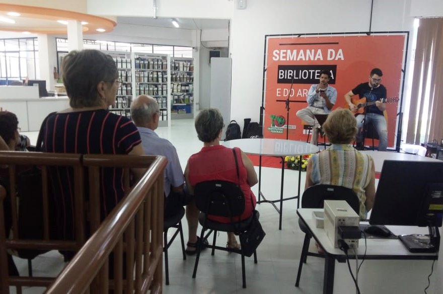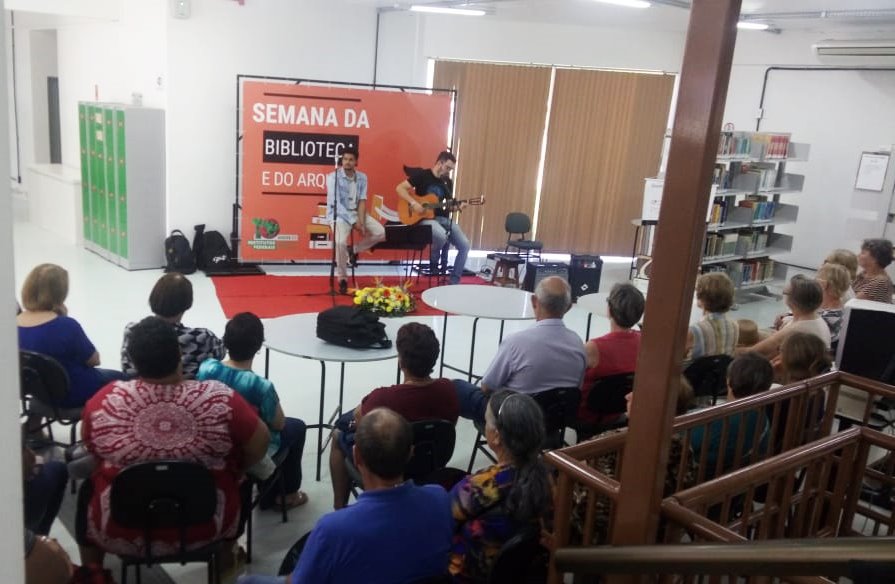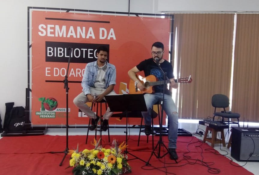 Na terça ao meio dia, de forma a oferecer à comunidade escolar um local e um horário diferenciados para apreciar boa música, aconteceu a 2ª Cantata da Biblioteca, trazendo um momento musical com os alunos Hélio Leal Barcelos e Antônio José do Nascimento Neto.