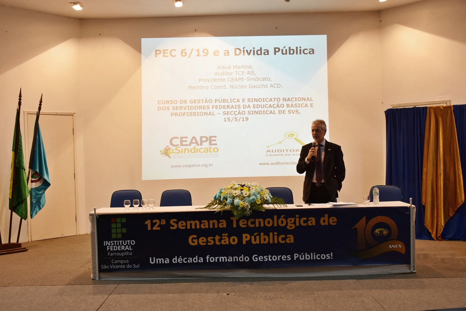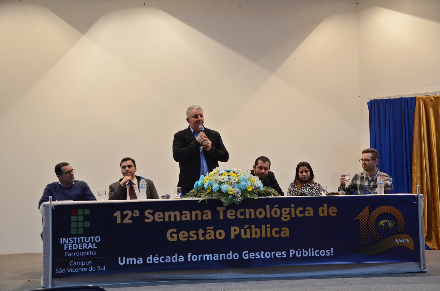 A edição deste ano foi especial pois comemorou os 10 anos de formação do Curso Superior de Tecnologia em Gestão Pública no Campus São Vicente do Sul. Na primeira noite de evento, a professora Simone Bochi Dorneles rememorou o processo de implantação do curso, iniciado em 2008, assim como sua evolução (veja no anexo alguns fatos marcantes, as publicações da GP, etc).