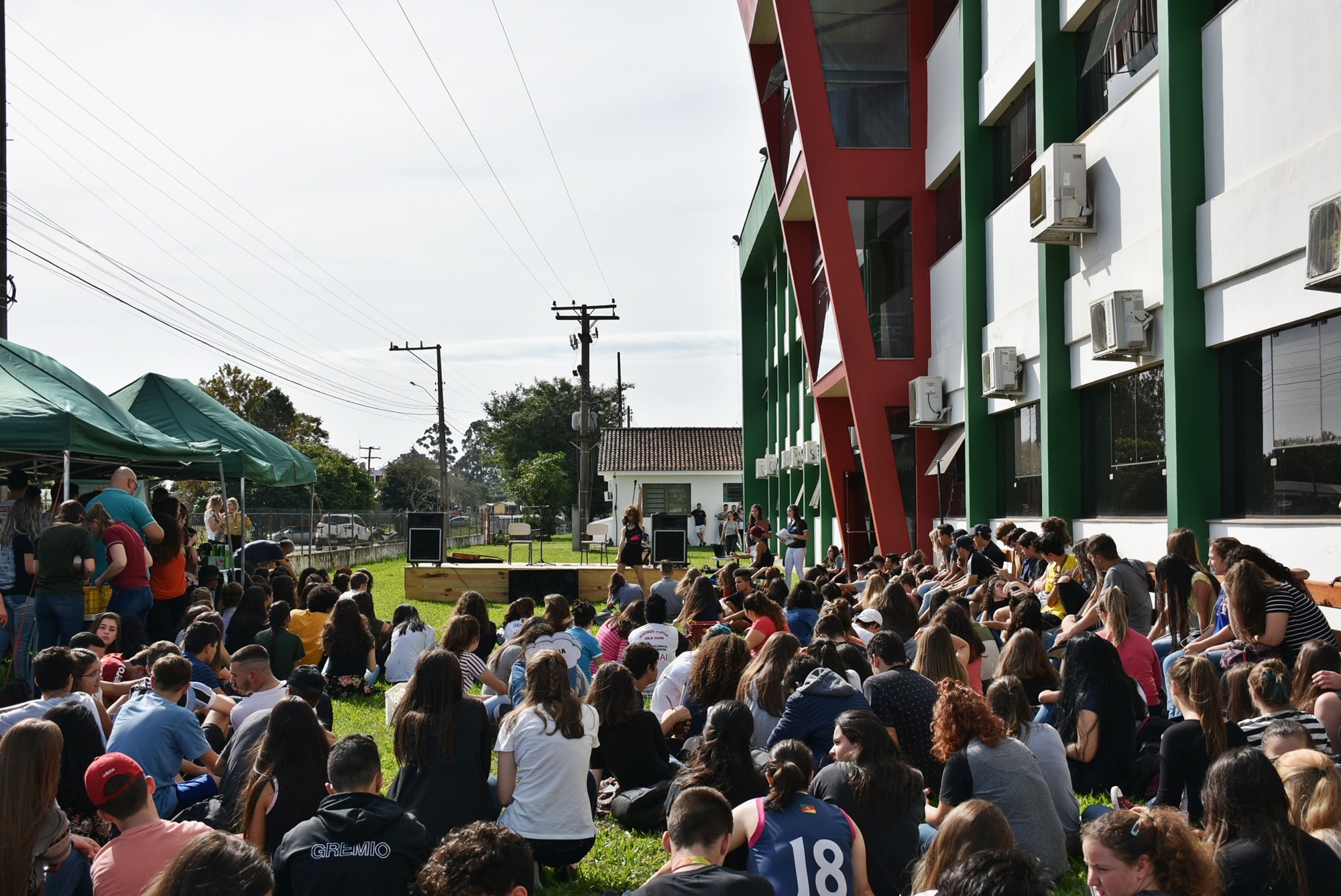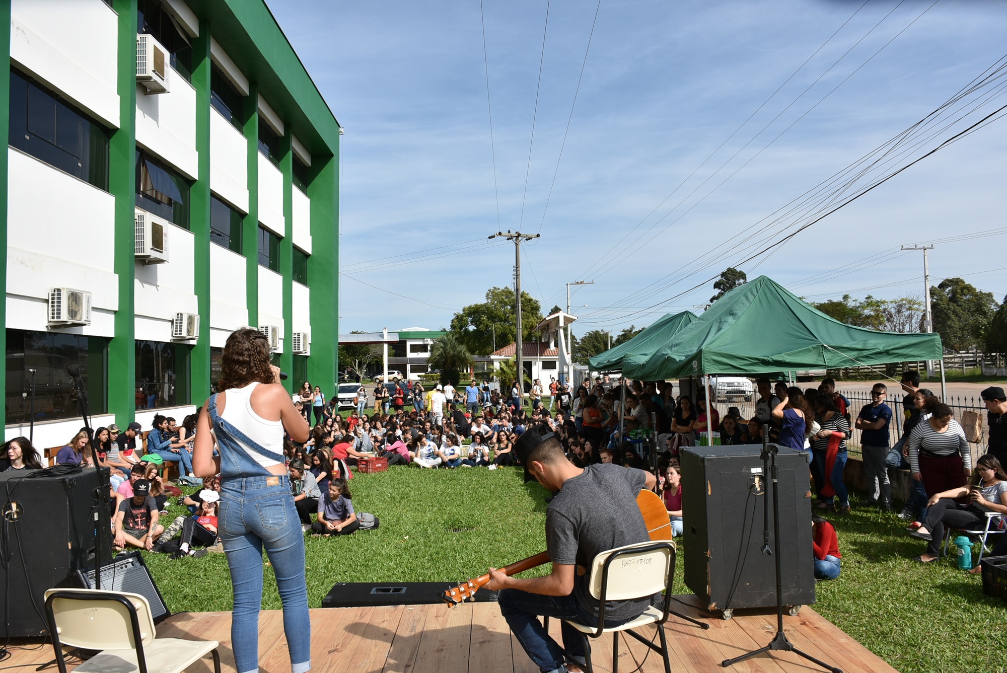 A atividade proporcionou à comunidade escolar um momento para lagartear ao sol, tomar mate, saborear bergamotas e laranjas, além de prestigiar apresentações artísticas - musicais e de dança - de talentos do próprio campus.