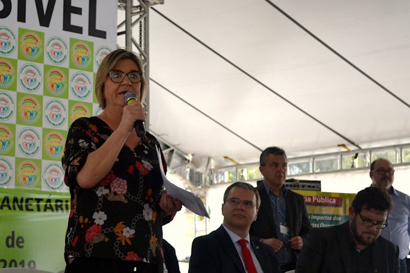 Foto: a reitora do IFFar, professora Carla Jardim, fala durante audiência pública na Feicoop