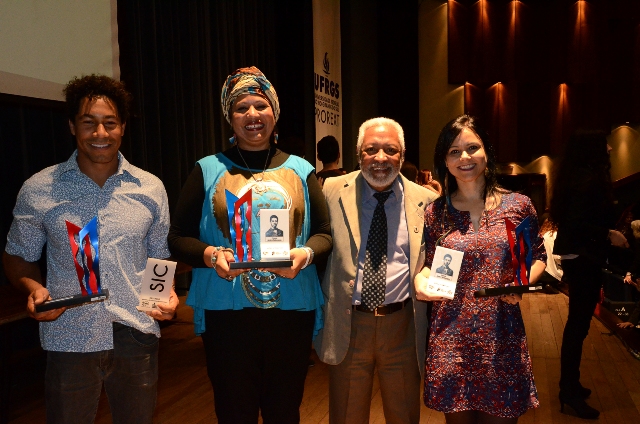 O Instituto Federal Farroupilha/ Campus São Vicente do Sul recebeu no dia 16 de setembro dois troféus no Salão de Ações Afirmativas da UFRGS: Troféu André Rebouças (Destaque de Sessão) e Troféu Destaque Geral. Estes troféus representam o reconhecimento do trabalho conjunto desenvolvido pela Coordenação das Ações Inclusivas (CAI) juntamente com os núcleos inclusivos NEABI,NUGEDIS e NAPNE. O trabalho “(Re) Conheça seu preconceito: ações, proposições e desconstruções” apresentado pelos professores Letícia Jobim, Liliana Souza de Oliveira e Vitor Ângelo Villar Barreto relata as ações desenvolvidas pelos núcleos inclusivos no Campus.