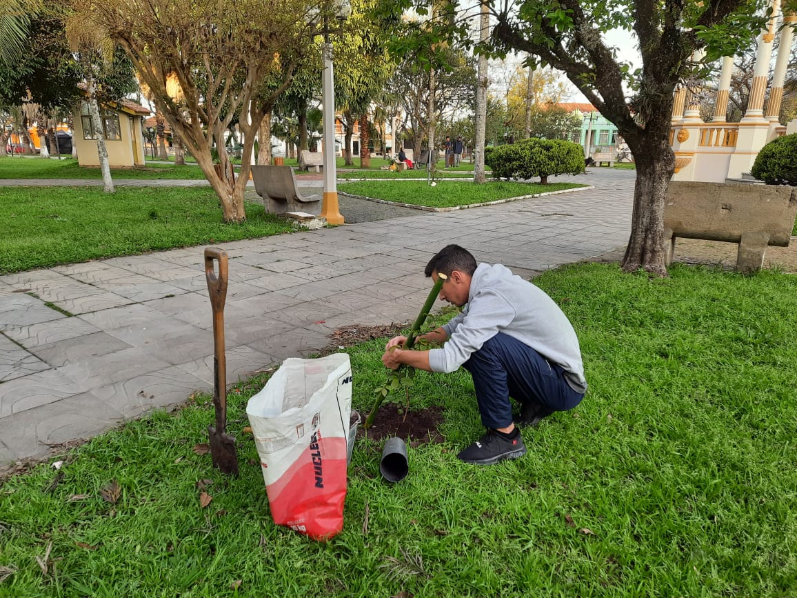 No final do mês de setembro, um projeto de extensão do IFFar-SVS realizou o plantio de árvores na praça central de São Vicente do Sul. Além de serem ações previstas no projeto intitulado “Recuperação e substituição de árvores da praça central do município de São Vicente do Sul”, a atividade também foi uma referência ao Dia da Árvore, comemorado no Brasil em 21 de setembro, e que tem o objetivo de conscientizar a população da importância das árvores para o meio ambiente e para a vida dos seres humanos.