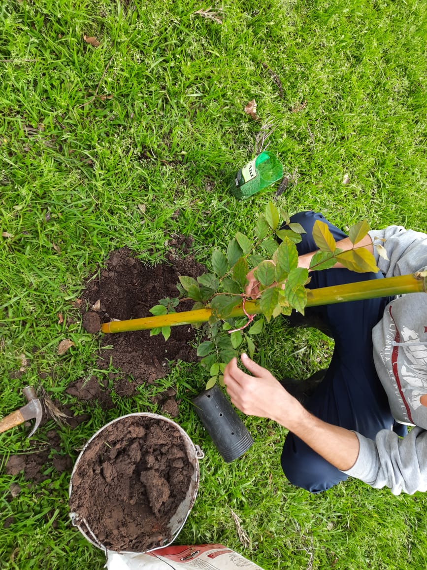 Na ocasião, foi realizada a instalação de proteção (feita com cano de esgoto) nos caules de árvores jovens plantadas em anos anteriores, visando evitar agressões físicas que impedem o desenvolvimento das plantas, como a ruptura da casca, por exemplo. Esse procedimento também foi realizado nas mudas novas.