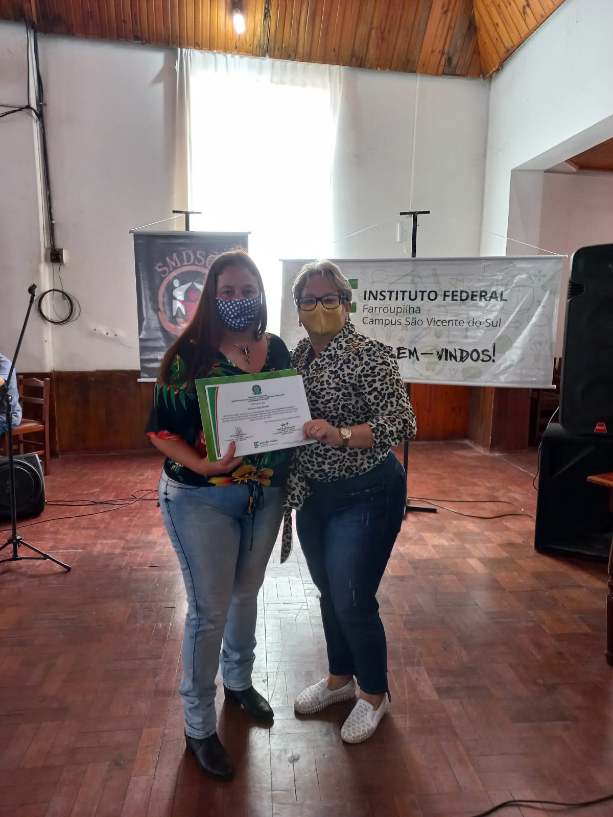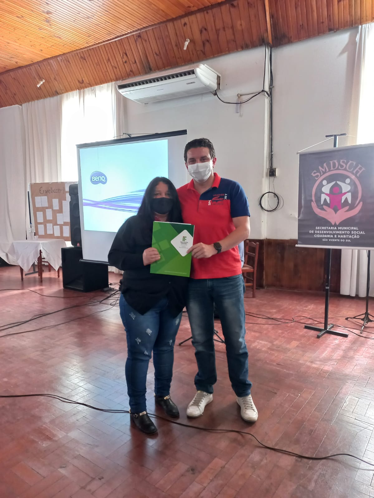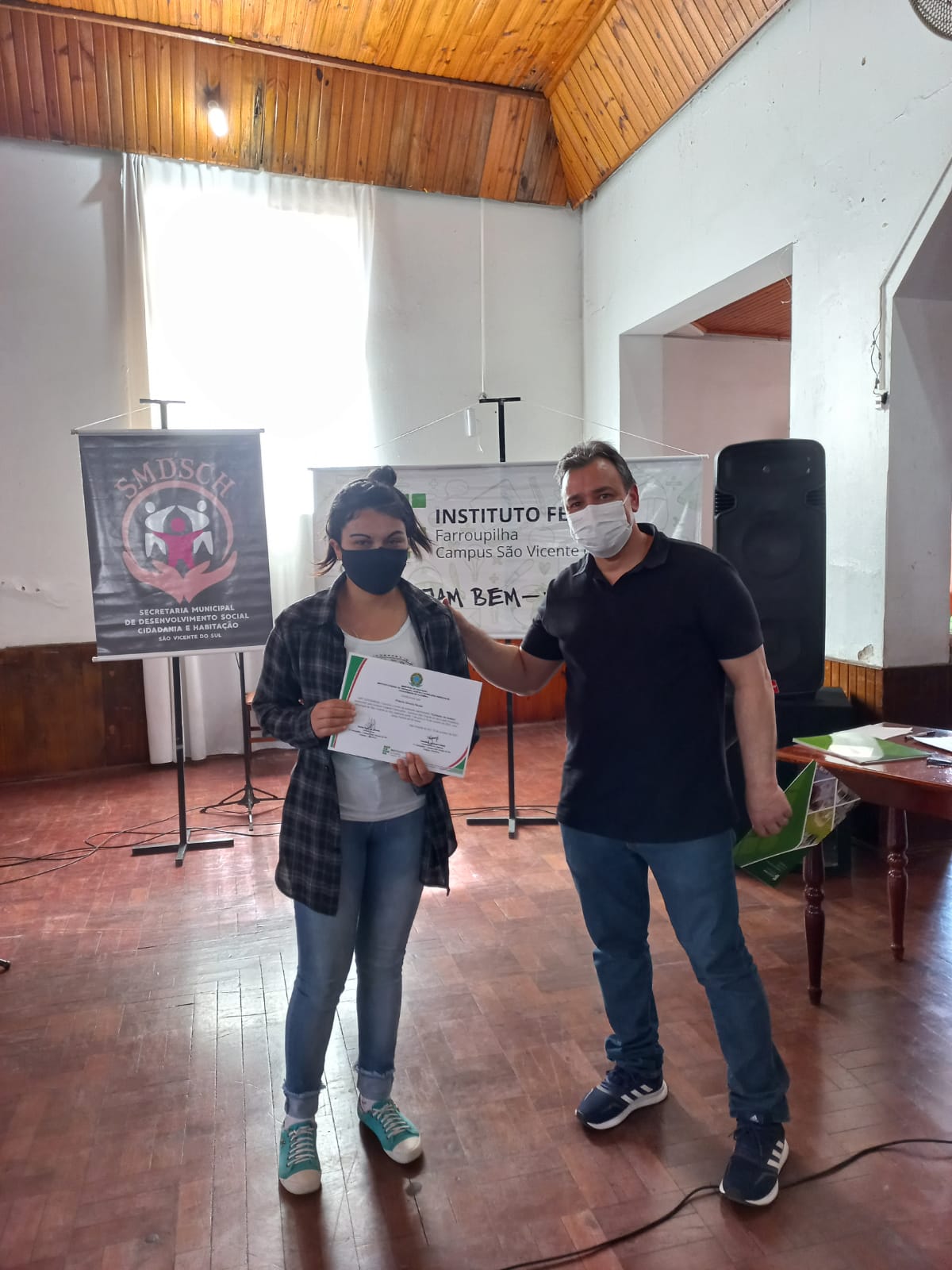 No fim do mês de outubro (19), houve o encerramento do Curso de Cuidador de Idosos, oferecido por meio da colaboração entre o IFFarroupilha-SVS e a Prefeitura de São Vicente do Sul. A cerimônia de entrega dos certificados ocorreu no Clube Vicentino - local onde também foram realizadas as aulas -, reunindo os 17 concluintes, os professores e profissionais-ministrantes, além de autoridades e equipe diretiva do Campus SVS.