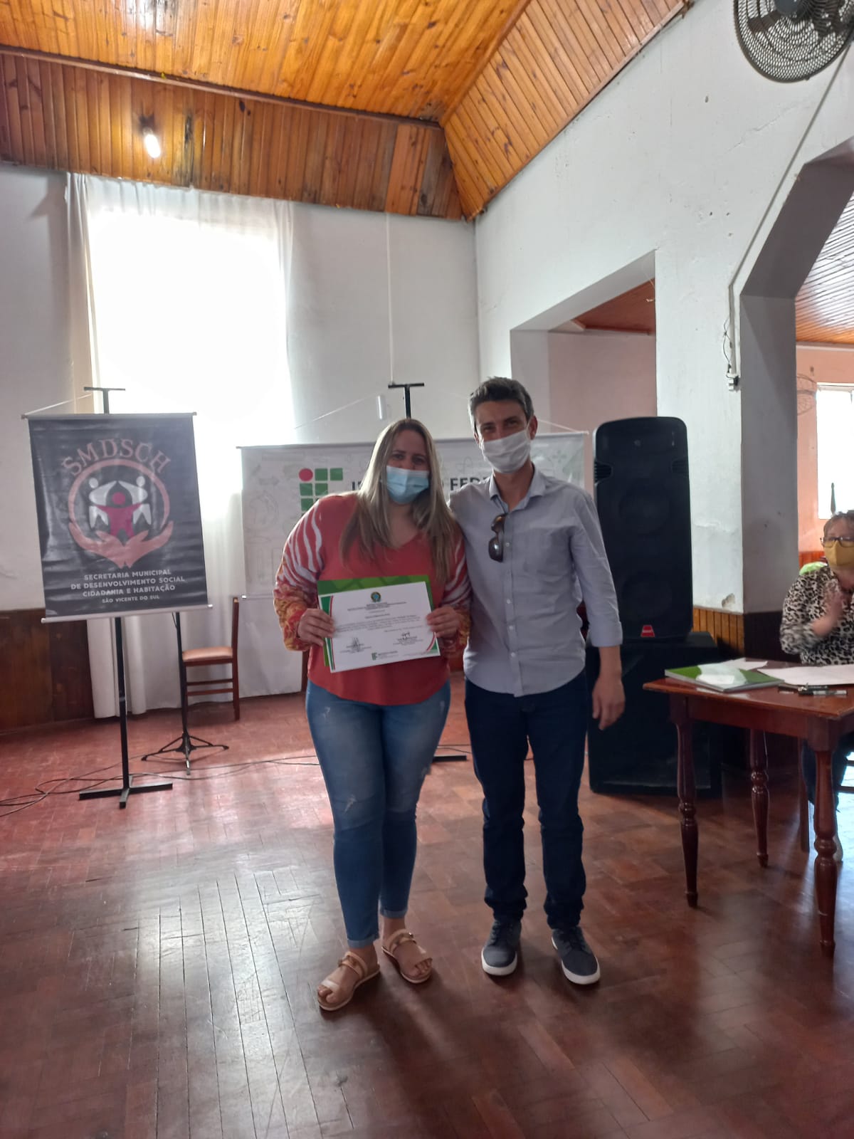 A cerimônia também incluiu a apresentação cultural da estudante Manuela Baccin da Rosa e uma roda de conversa, em que os cursistas puderam expressar sua avaliação do curso.