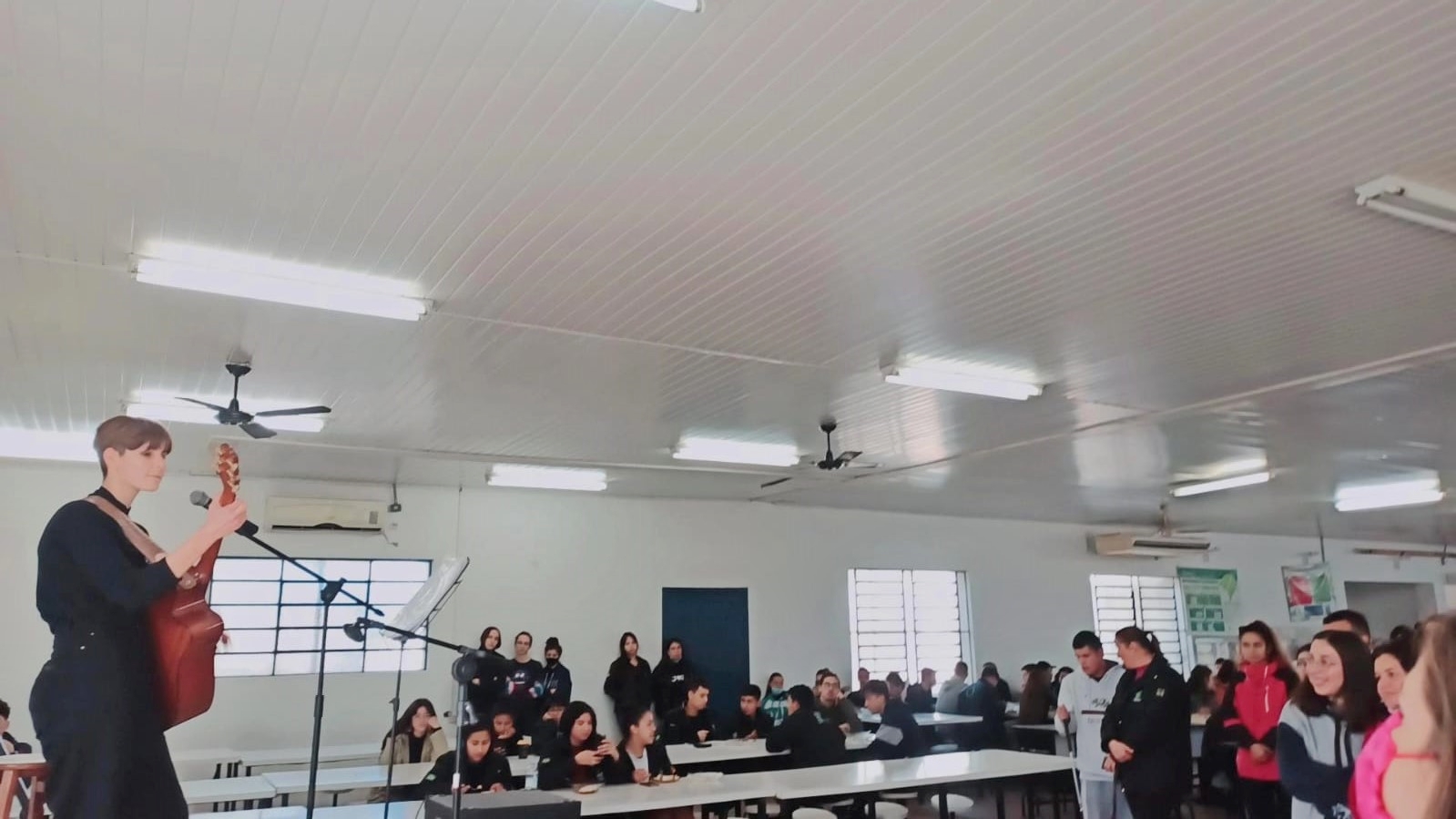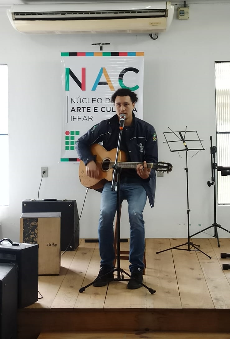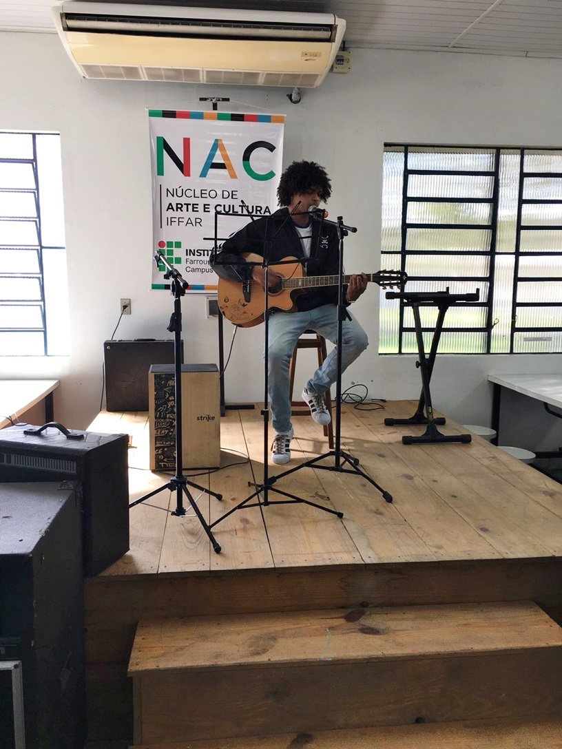 Na última terça-feira, dia 12 de julho, o refeitório do Campus São Vicente do Sul foi palco do evento “Música no Cardápio”, que ocorreu no horário do almoço e presenteou a comunidade acadêmica com apresentações de alguns talentos musicais da instituição.