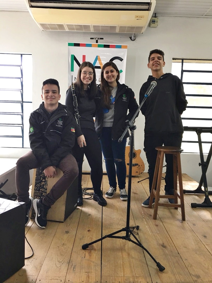 “Música no Cardápio” teve a participação dos seguintes estudantes: Andressa Brandão (voz e teclado), Antônio José do Nascimento (voz e violão), Bernardo Dorneles (gaita), Diony Joras (voz e violão), Emily Wacht (clarinete), Gabriel da Silva de Quevedo (voz), Luis Fernando Lopes (gaita), Manuela Baccin (voz e violão), Melissa Hopf (voz) e Nedilen Francisco (voz e violão).
