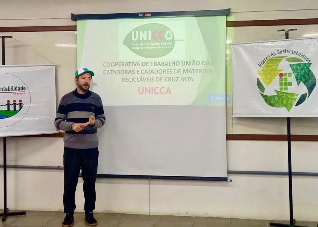 Na ocasião, foi apresentada a experiência da Cooperativa de Trabalho UNICCA, que vem atuando na prestação de serviços para a prefeitura de Cruz Alta/RS. A cooperativa iniciou com 45 associados, e tem trazido ganhos para o município e para a comunidade, tanto no que se refere à economia de recursos, como na formação cidadã em educação ambiental.
