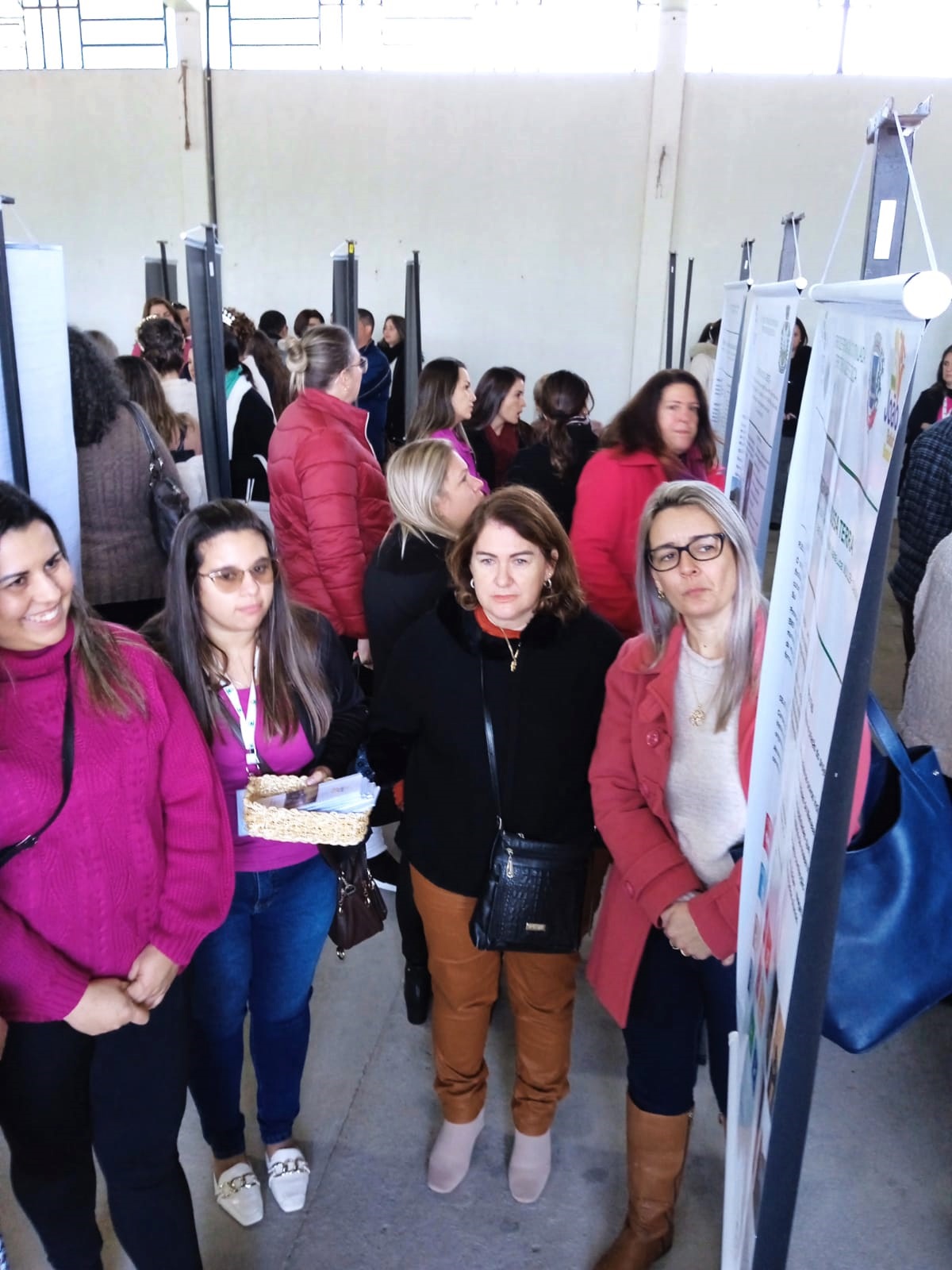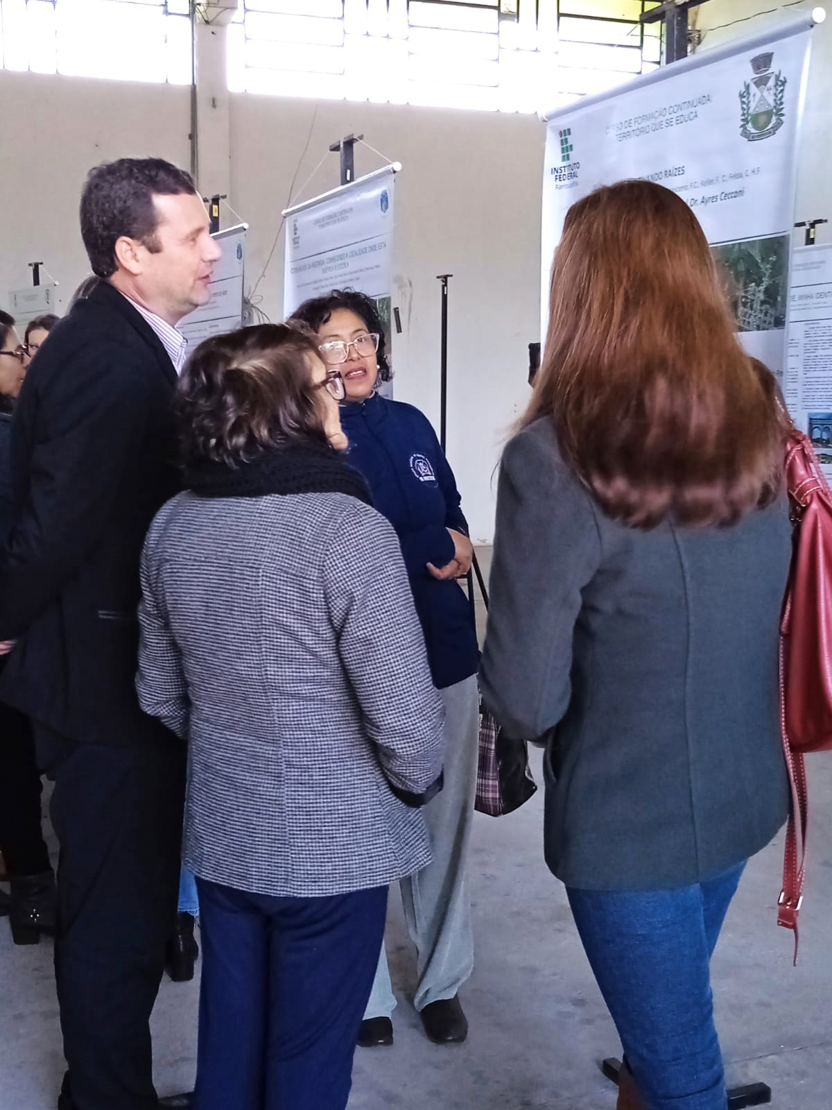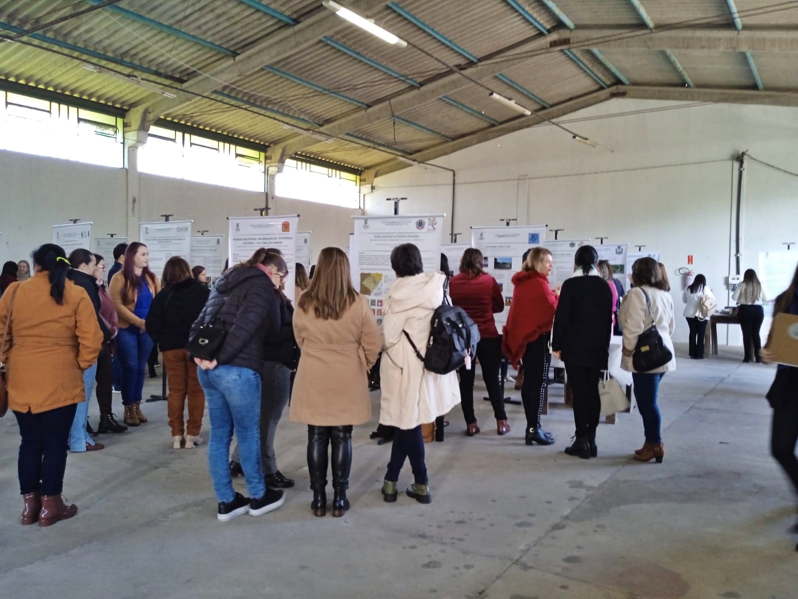 Na parte da manhã, houve a Mostra de Banners, com a exposição dos trabalhos finais produzidos pelos participantes do curso, que eram professores/as e gestores/as advindos de Jaguari, Mata, Nova Esperança do Sul, São Francisco de Assis, São Pedro do Sul e São Vicente do Sul. Os temas abordados foram pesquisados e discutidos junto às comunidades, resultando em 24 banners sobre propostas de ações educativas a serem aplicadas nos territórios.