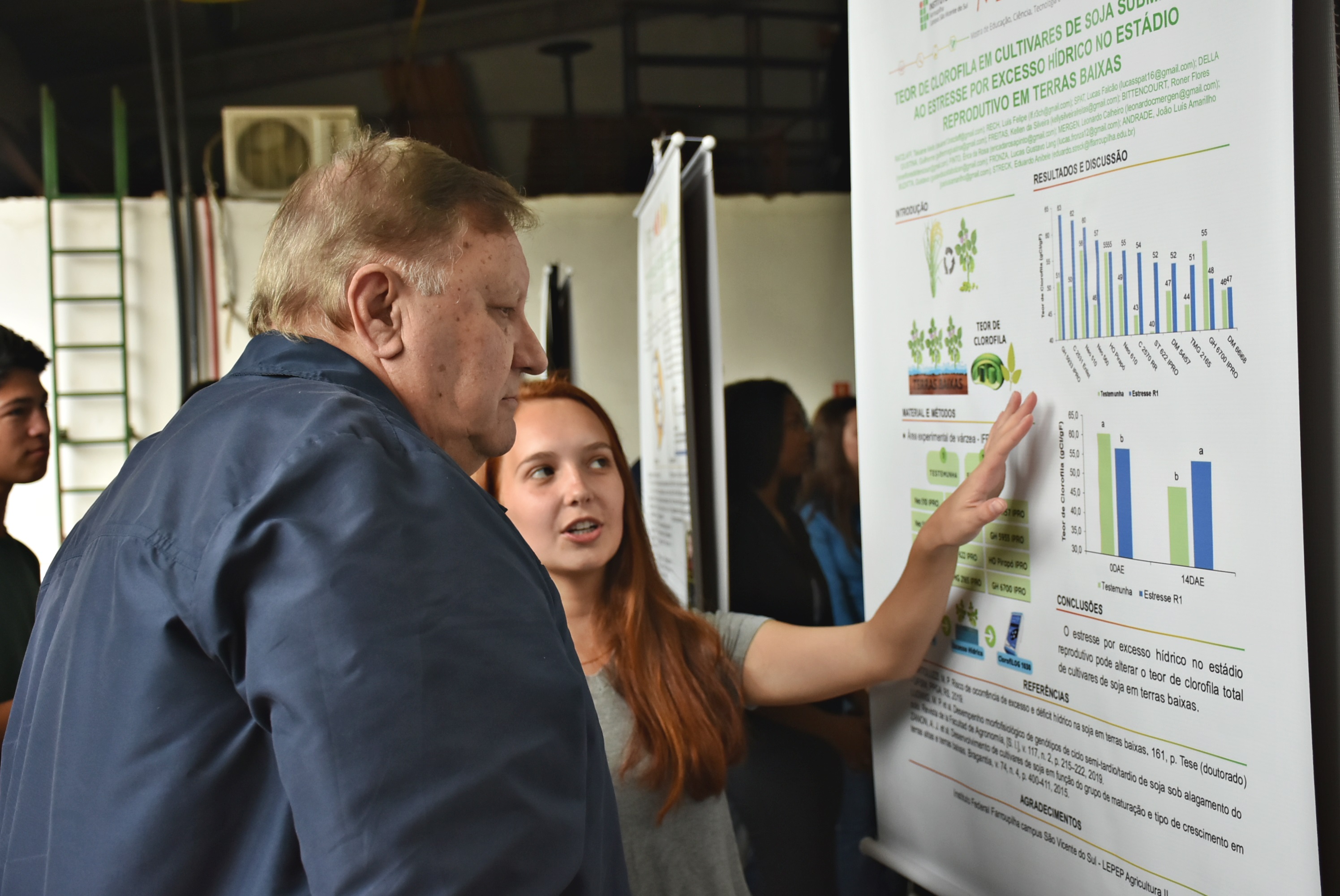 À tarde, aconteceu a Mostra de Banners, momento que oportuniza a exposição de trabalhos, projetos científicos, tecnológicos, de educação, culturais, de inovação e empreendedorismo, elaborados por acadêmicos e/ou estudantes da educação básica, sob orientação de servidores da instituição.