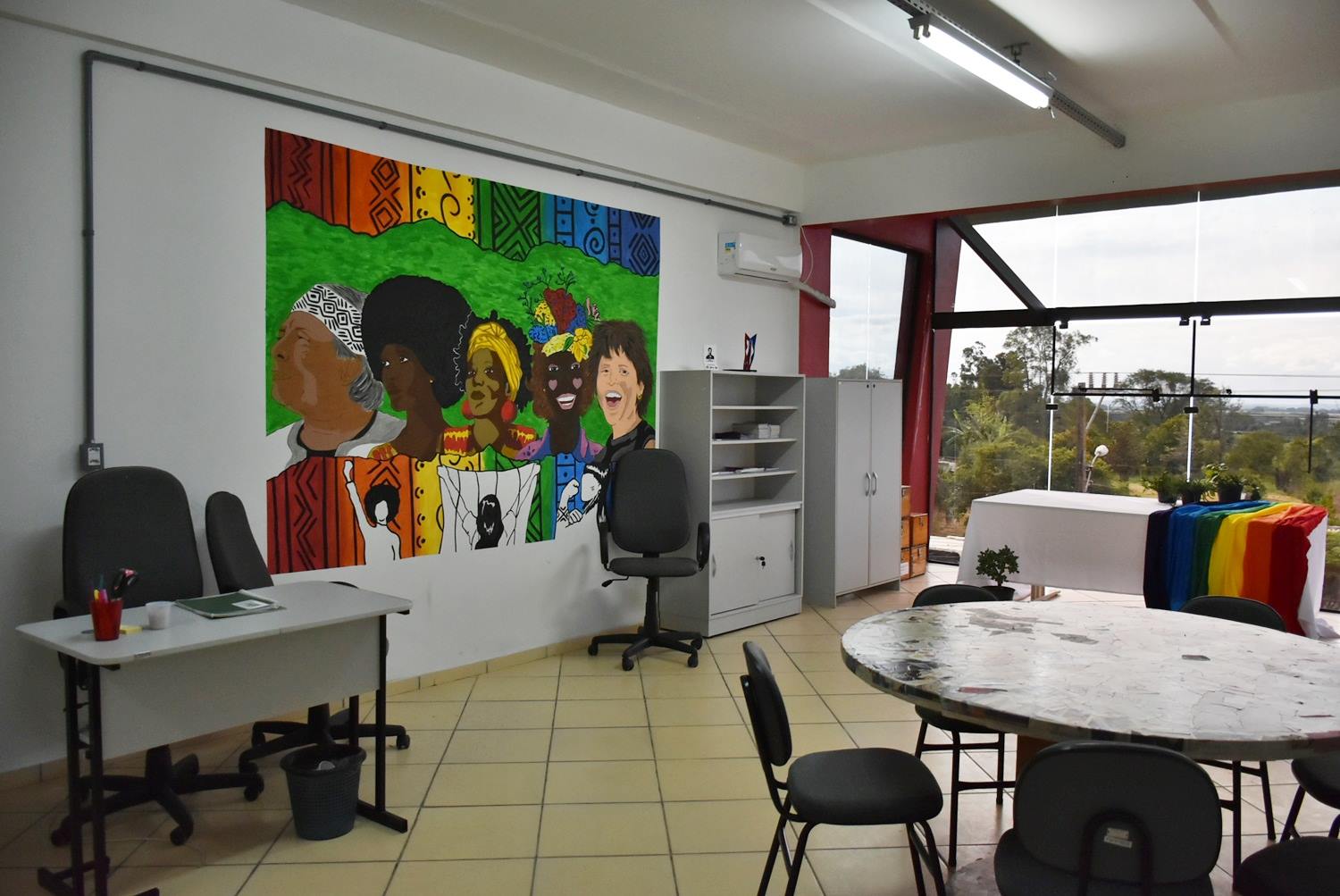Além da abertura oficial à comunidade escolar e acadêmica, houve a entrega da premiação para a estudante Eduarda Bataglin (do 3º ano ADM), vencedora do concurso que selecionou o desenho a ser pintado em uma das paredes da sala. No mural, criado e pintado por ela, estão representadas as seguintes personalidades: Ailton Krenak, Angela Davis, Marielle Franco, Marsha Johnson e Cássia Eller.
