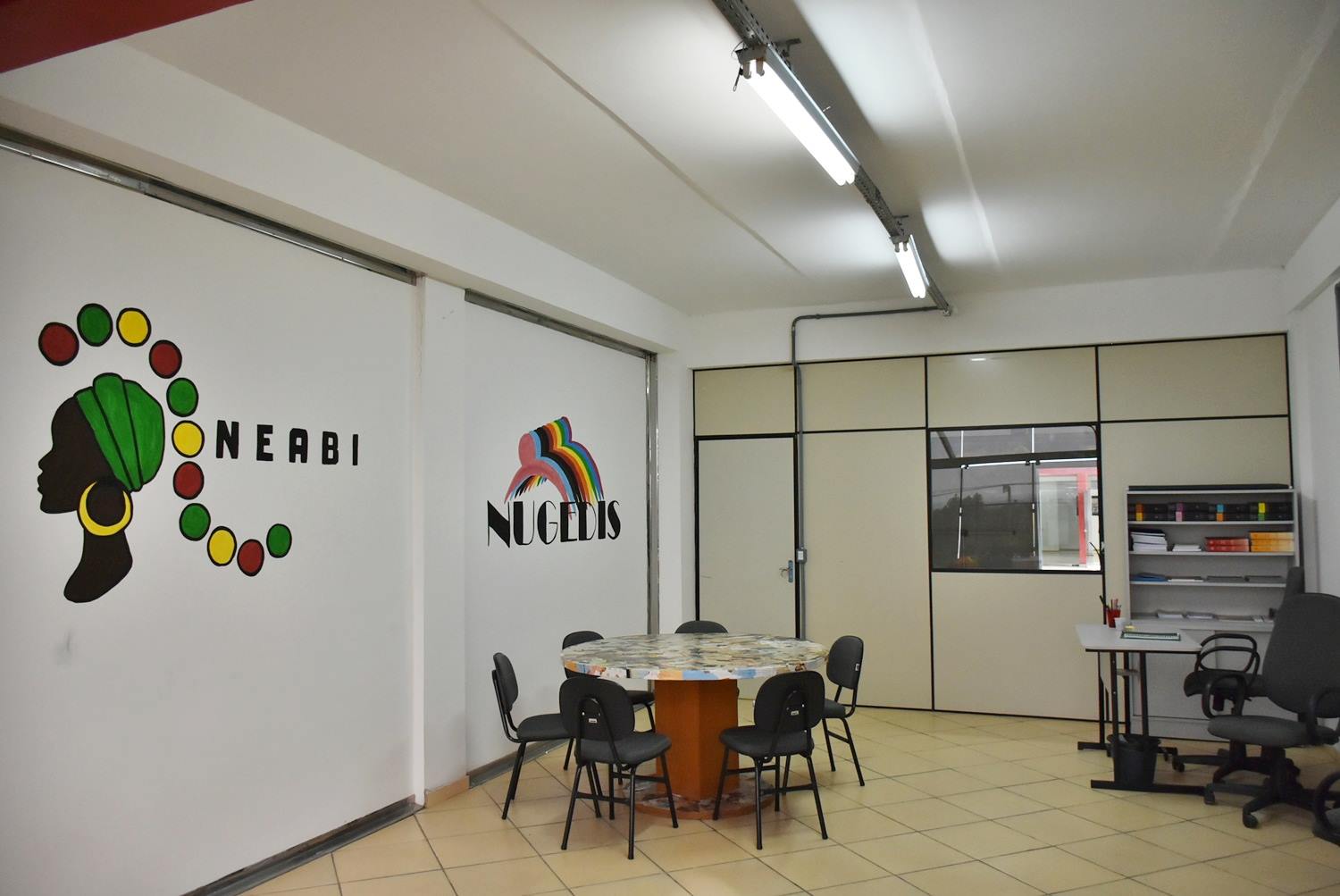 Na última sexta-feira, dia 24 de novembro, foi inaugurada a sala dos Núcleos Inclusivos do Campus São Vicente do Sul – NEABI e NUGEDIS, respectivamente: Núcleo de Estudos Afro-brasileiros e Indígenas e Núcleo de Gênero e Diversidade Sexual. A sala está localizada no 3ª andar do prédio A (sala A-210) e oportuniza um ambiente para o desenvolvimento de atividades ligadas a esses movimentos, bem como espaço de estudos e pesquisas sobre as temáticas inclusivas.