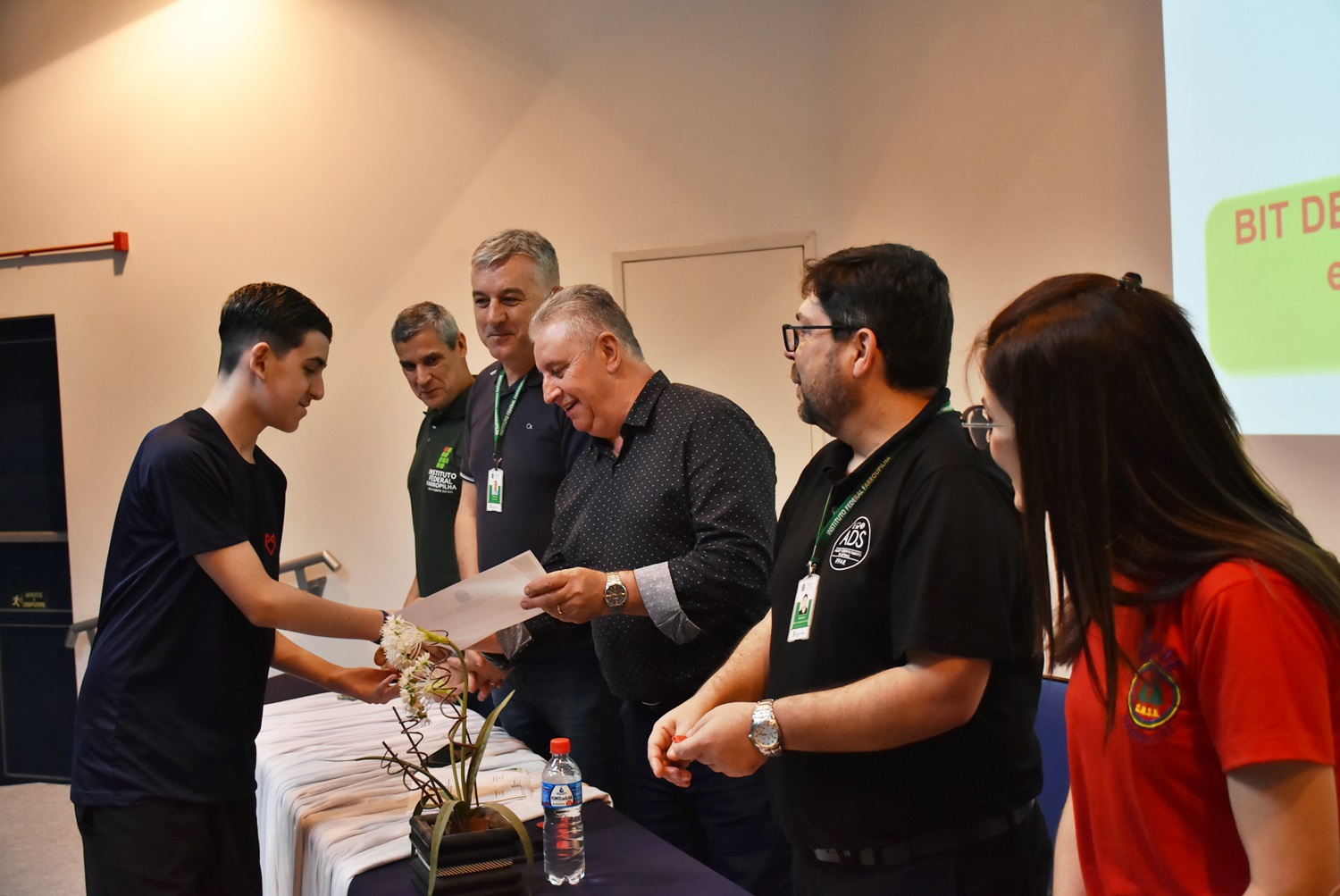 Participaram da cerimônia, o diretor de Ensino, prof. João Flávio Cogo Carvalho; diretor de Pesquisa, Extensão e Produção, Fabiano Damasceno; coordenador de Extensão, Hélio Fontana; coordenador geral do Projeto Bit, prof. Alecson Milton Almeida dos Santos; além da profª. Roberta Soares de Bacco, diretora do Colégio Nossa Senhora das Graças.