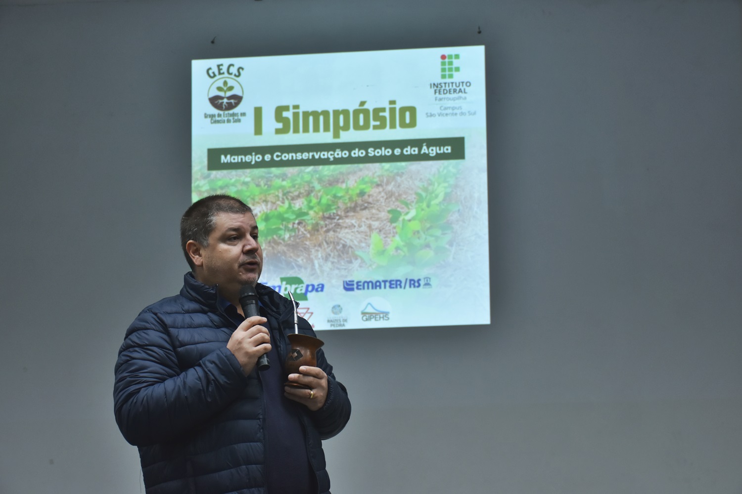 No dia 2 de julho, o Instituto Federal Farroupilha - Campus São Vicente do Sul sediou o I Simpósio “Manejo e conservação do solo e da água”, que reuniu estudantes, docentes, produtores rurais e extensionistas, além de profissionais e pesquisadores da área. O evento promoveu temas como recuperação de solos e qualidade hídrica, por meio de palestras e de atividades demonstrativas.