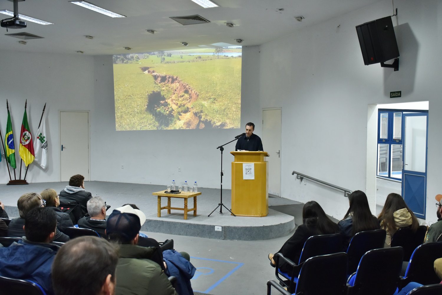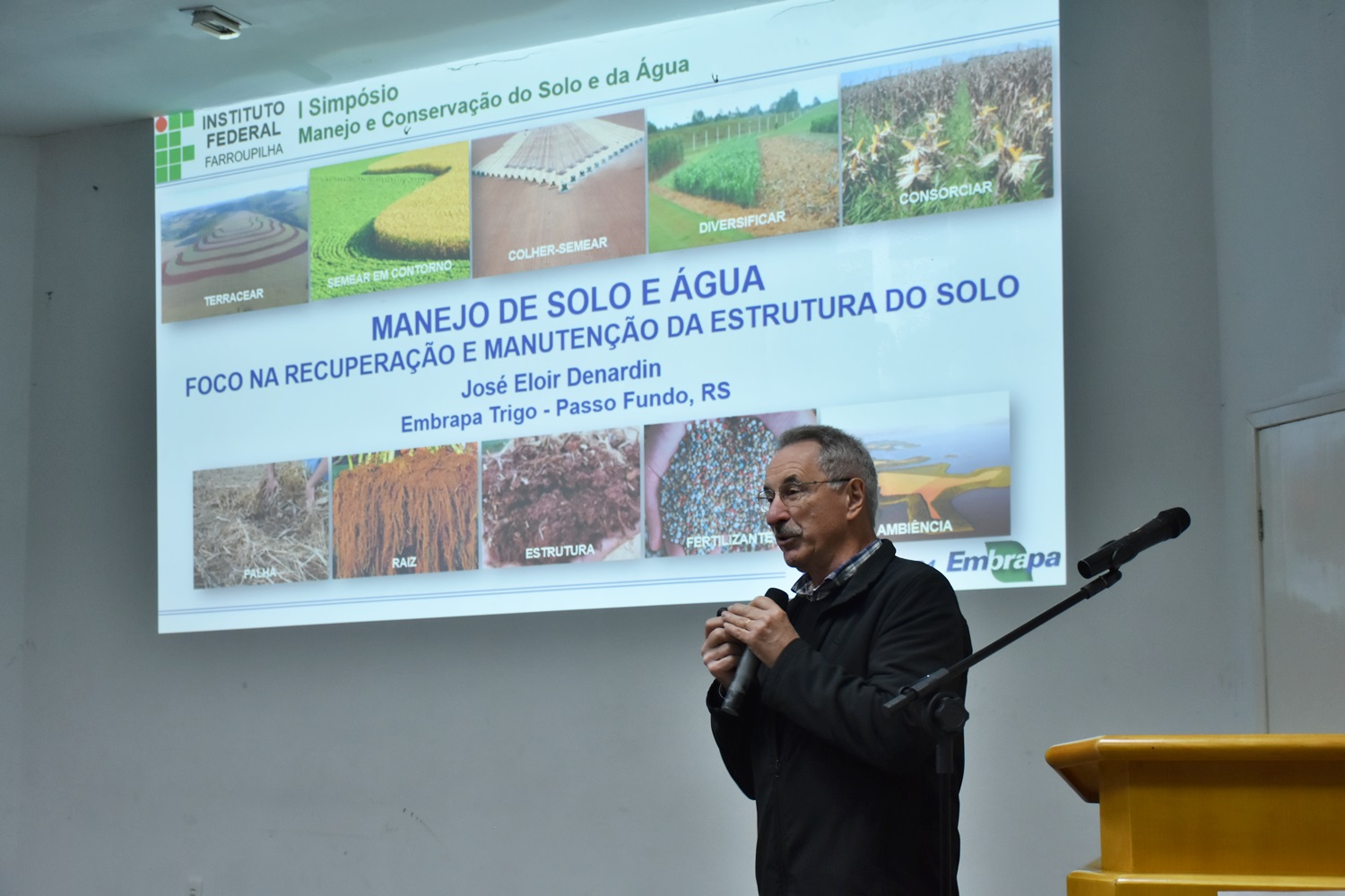 Na parte da manhã, dr. José Eloir Denardin, pesquisador da Embrapa Trigo (Passo Fundo/RS), proferiu palestra sobre a relação do sistema de produção com a melhoria da estabilidade estrutural do solo, além de indicar tecnologias dirigidas à emergência da fertilidade do solo. Ele destacou que grande parte das perdas são ocasionadas por falhas no manejo de tecnologias agrícolas.