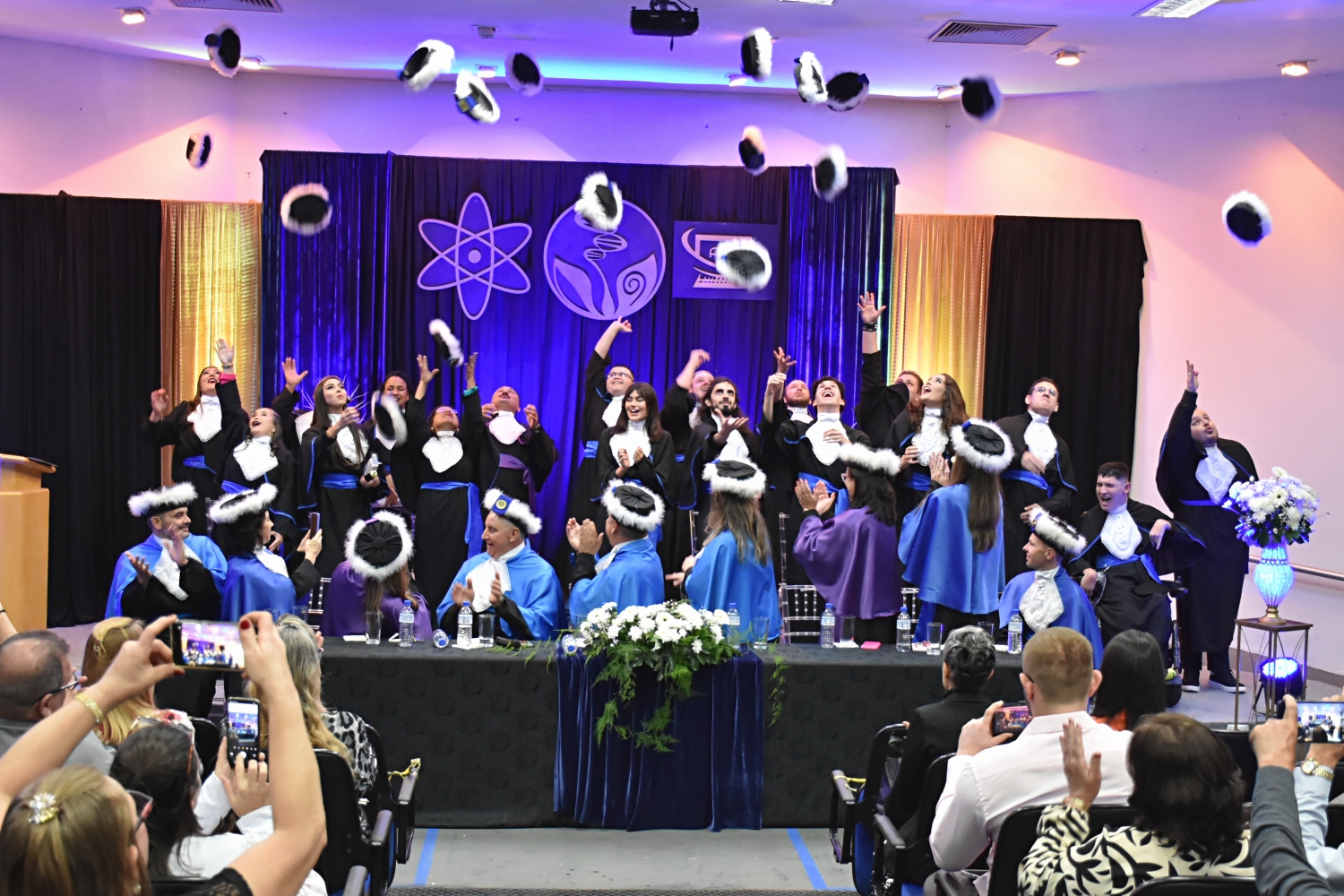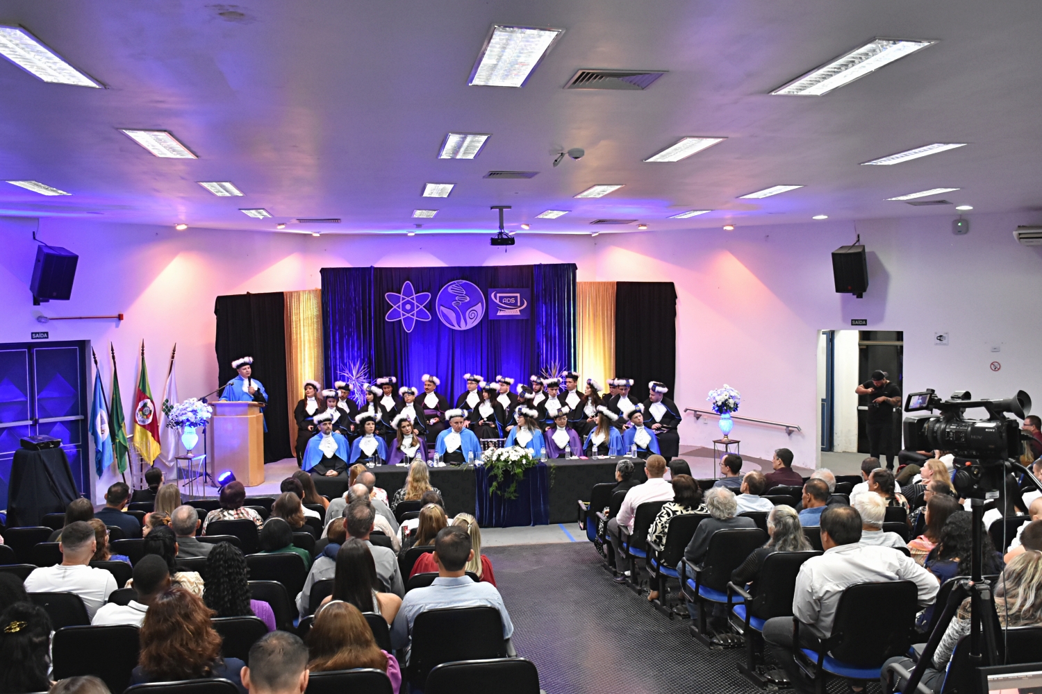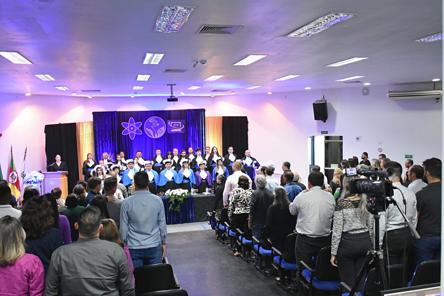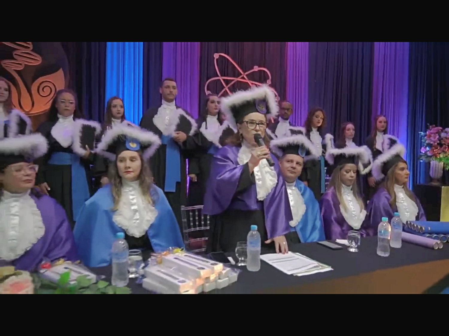 A noite do dia 19 foi marcada de emoção, entre elas a entrega conjunta de título para mãe e filha. Formaram-se, respectivamente, Gislei Guerin Vieiro, em Licenciatura em Ciências Biológicas; e Paola Guerin Cabral, em Tecnologia em Análise e Desenvolvimento de Sistemas.