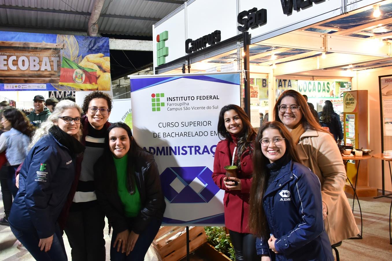 O Instituto Federal Farroupilha - Campus São Vicente do Sul está presente na 34º Feira Estadual de Comércio da Batata-Doce (Fecobat), tradicional evento da região que acontece de 8 a 11 de agosto, nos pavilhões de eventos da Prefeitura Municipal de São Vicente do Sul. A cidade é conhecida como a Terra Doce do Centro-oeste gaúcho e a festividade reforça a história da produção e da cultura da batata-doce e de seus derivados.