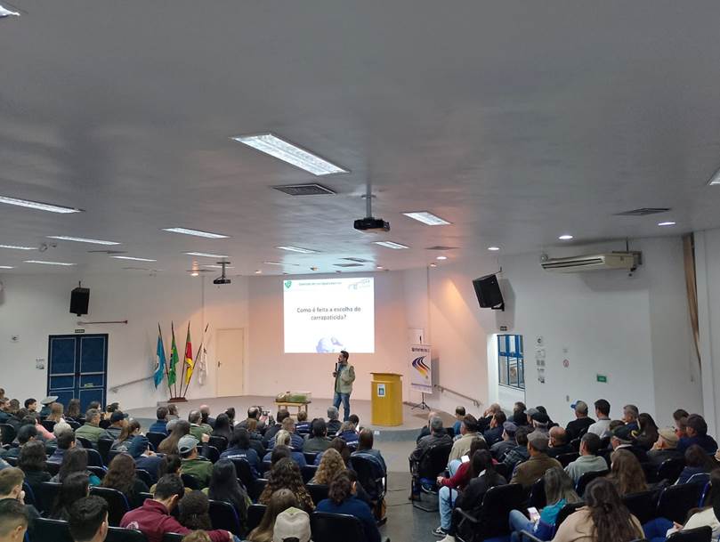 Na última quarta-feira, dia 4 de setembro, aconteceu no Campus São Vicente do Sul um evento voltado ao compartilhamento de estratégias para o combate do carrapato bovino, cuja infestação causa graves consequências à saúde dos animais e, assim, impactos negativos na produtividade do rebanho. A atividade aconteceu no auditório central da instituição, reunindo cerca de 350 pessoas, entre estudantes do Eixo de Recursos Naturais, produtores rurais e profissionais extensionistas da região.