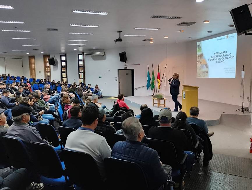 Após, o tema tratado foi “Homeopatia alternativa para o controle do carrapato bovino”, ministrada por Laila Ribeiro, doutora em Produção Animal com ênfase em bem-estar animal e extensionista rural do Escritório Municipal Emater/RS de São Pedro do Sul. A homeopatia foi apresentada como uma ferramenta que pode ser usada dentro do sistema estratégico de controle, aliando-se a outros tipos de soluções químicas e/ou biológicas.