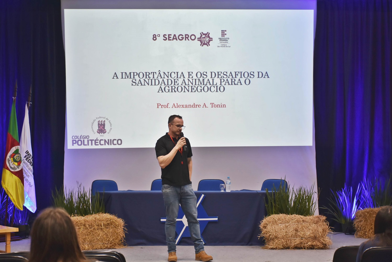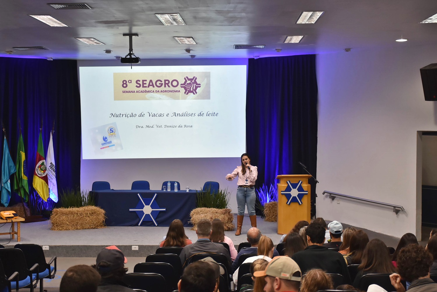 Na última semana, de 23 a 26 de setembro, ocorreu, no Campus São Vicente do Sul, a 8ª edição da Semana Acadêmica da Agronomia (SEAGRO), evento que reuniu estudantes dos cursos do Eixo de Recursos Naturais, servidores, produtores e técnicos. Foram 4 dias de programação, trazendo especialistas de diversas instituições para palestras e oficinas sobre temáticas atuais e pertinentes à área agronômica.