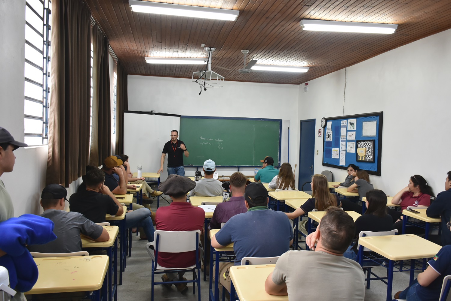 Na quarta-feira, 25, foi realizada uma roda de conversa com egressos e egressas, proporcionando um rico momento de troca de experiências. Participaram do encontro Moara Siqueira, doutoranda UFSM e professora URI; Bruno Salbego, empresário e sócio da Salbego Consultoria Agrícola; e Gabriela Guimarães Dornelles, representante técnica de vendas BASF.