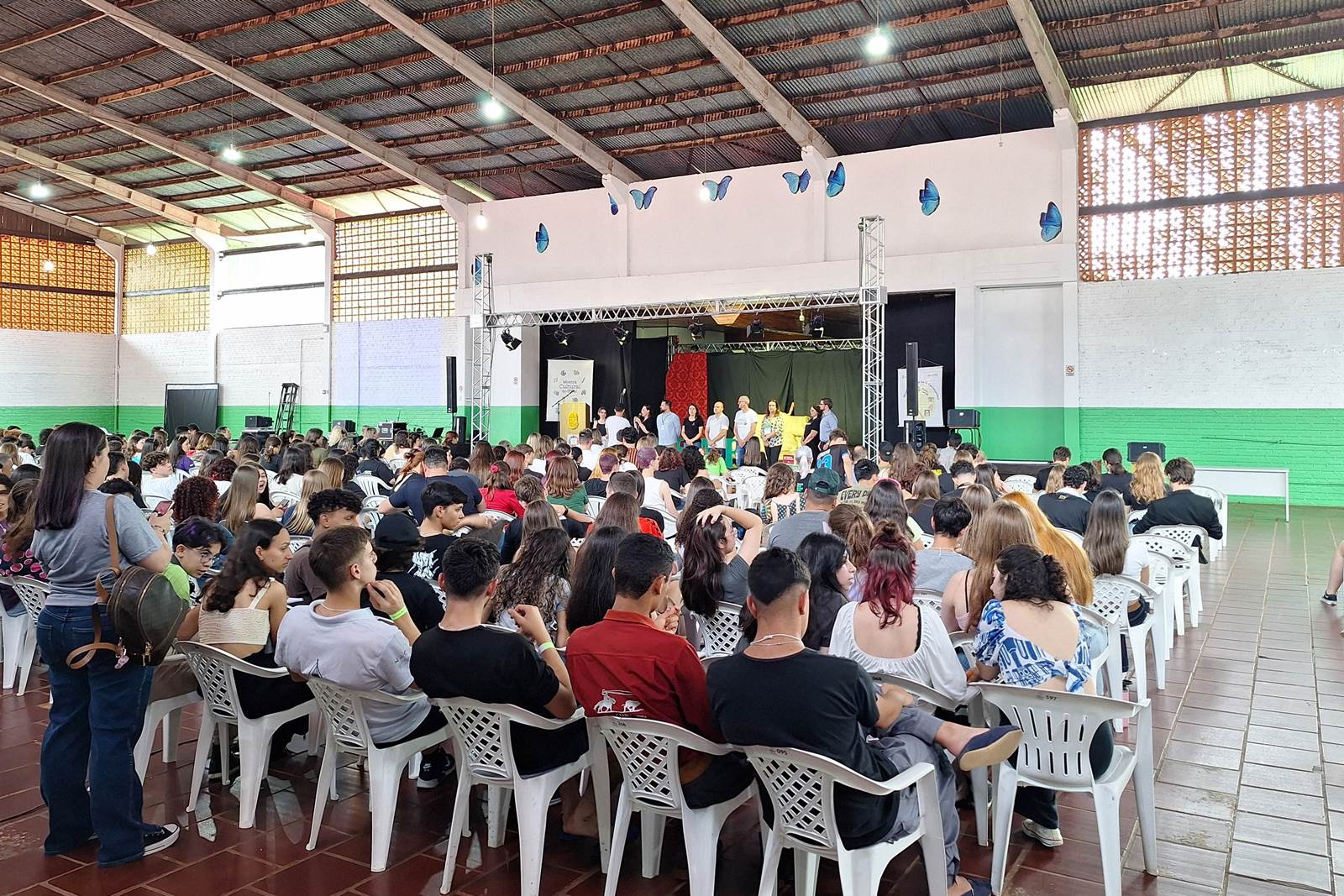 Os estudantes Nathany Santos e Victor Heck integraram a equipe de apresentadores do evento.