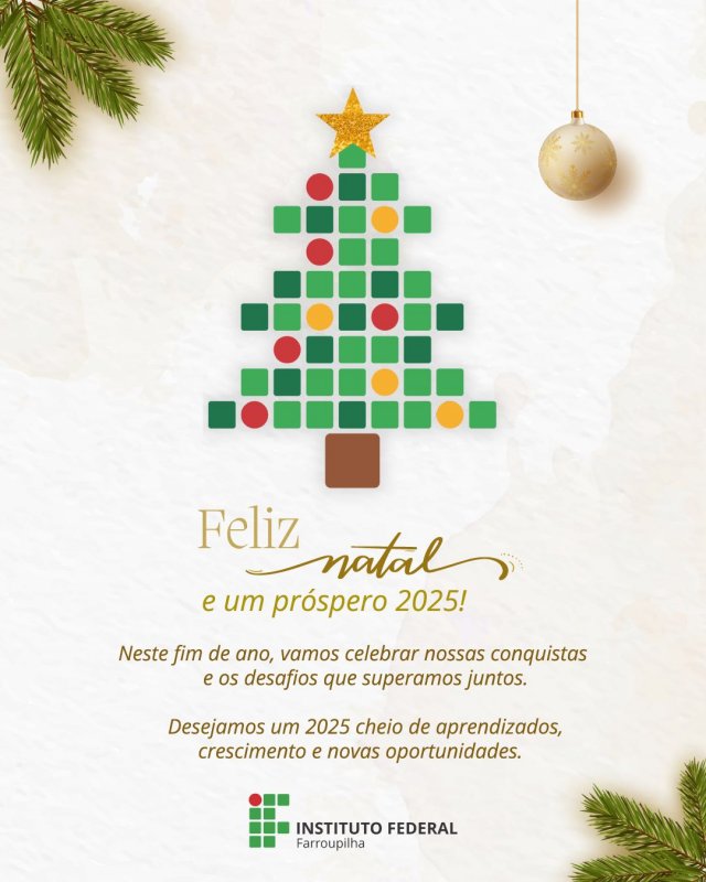 No período de recesso de final de ano - 23 de dezembro de 2024 a 3 de janeiro de 2025 -, o Campus São Vicente do Sul segue com horário de funcionamento das 07h45 às 11h45min (manhã) e das 13h15 às 17h15min (tarde), com exceção dos dias 24 e 31 de dezembro, que terá um horário de atendimento das 7h45min às 12h.