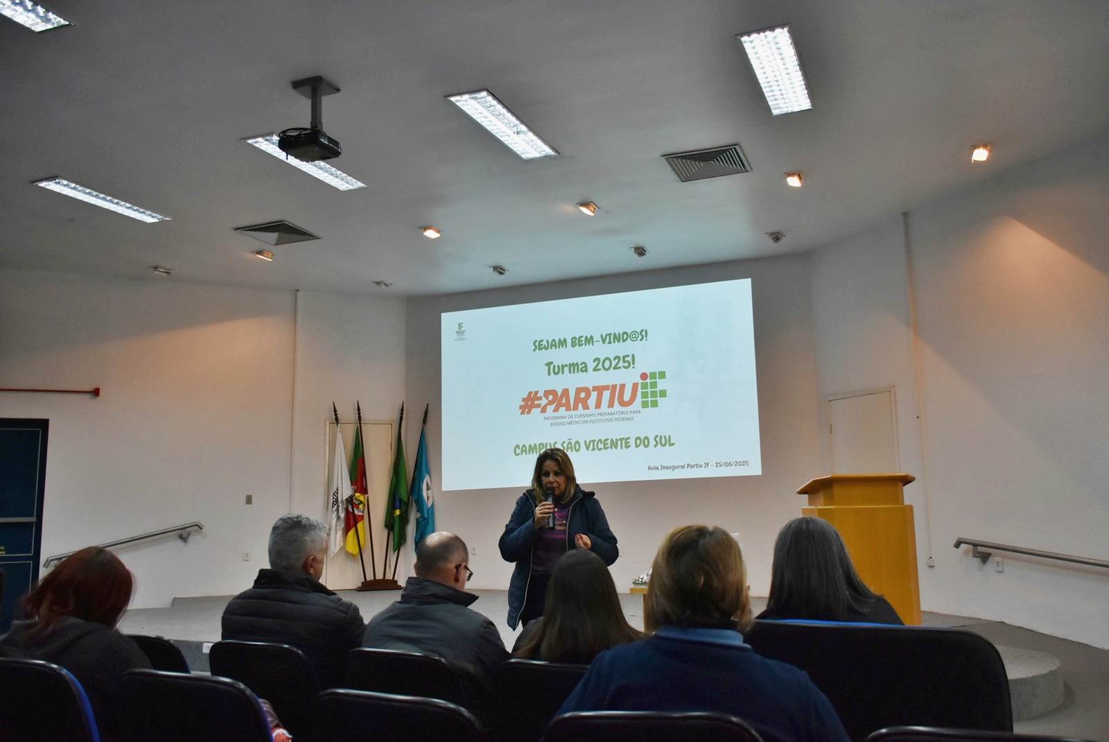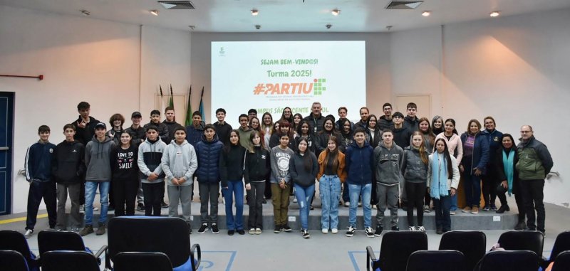 Na tarde desta quarta-feira, 25 de junho, o IFFar – Campus São Vicente do Sul realizou a aula inaugural do Programa Partiu IF, cursinho preparatório voltado a estudantes do Ensino Fundamental que desejam ingressar nos cursos técnicos integrados ao Ensino Médio dos Institutos Federais. Na ocasião, a instituição recepcionou os 38 estudantes selecionados, além dos/as professores/as e monitores/as que compõem a equipe responsável pela condução do programa.