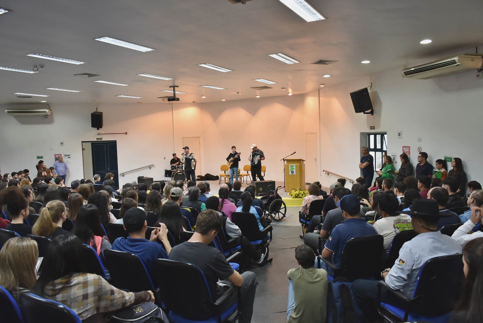 Em ambos os turnos, houve uma atração musical antes de cada palestra. À tarde, as canções "Não te anseia" e "O tempo da vida" foram interpretadas pelo Grupo Gaudérios do IFFar, composto pelos estudantes Lorenzo Scalcom Ereno (vocal e gaita), Luis Otávio Keller Picolo (violão), Gabriel Wouters Antonov (gaita) e Otávio Viaro Duarte (vocal e bateria). À noite, quem animou o auditório foi a Banda Gurizada do IF, composta pelo prof. Hermes Uberti (gaita), Diony Joras (violão), Cristopher Goulart (bateria) e Talita de Oliveira e Olava Gouvêa (vocal).