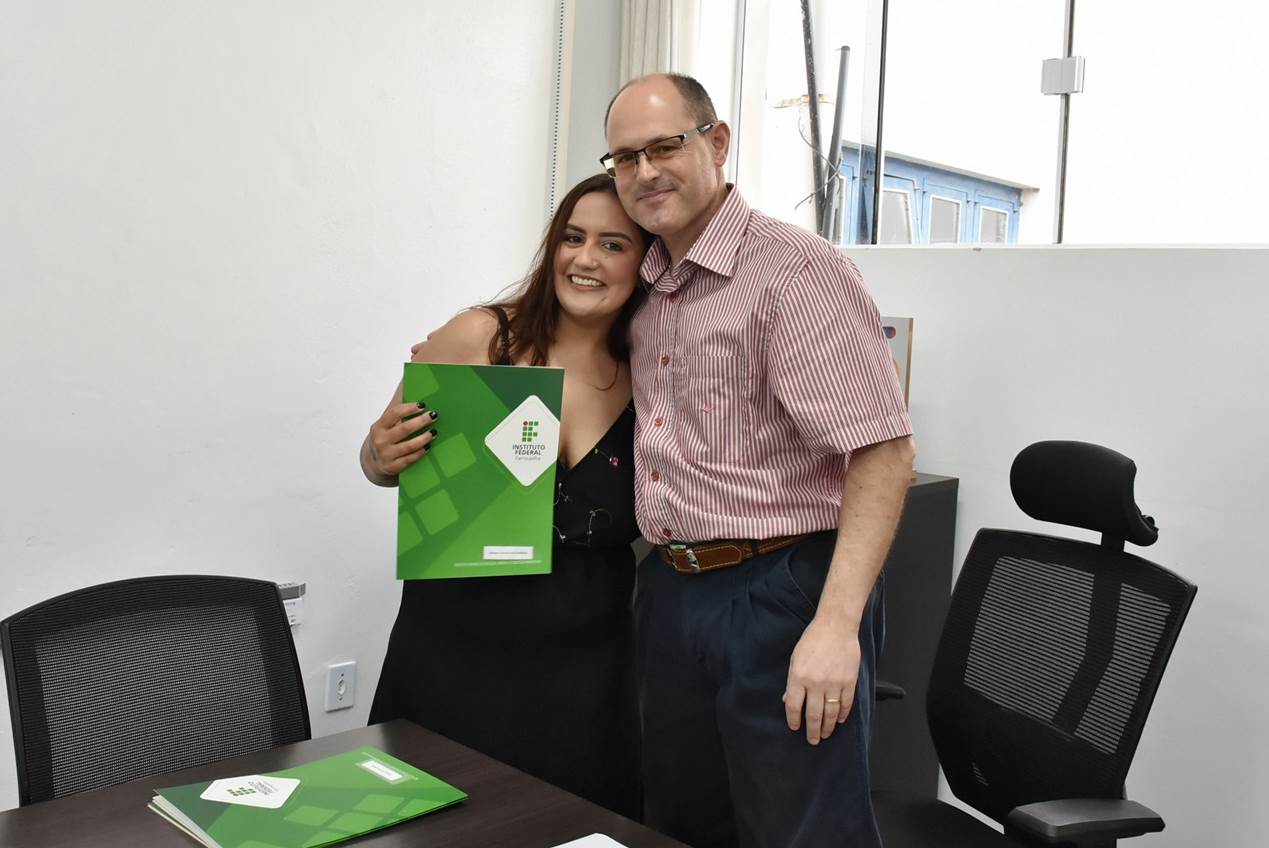O ato solene ocorreu na sala da Direção-Geral e contou com a presença do diretor-geral do campus, professor Paulo Roberto Cecconi Deon; da coordenadora da licenciatura, profª Catiane Paniz ; e do coordenador substituto do curso de ADS, prof. Alex Marin; e da chefe de gabinete substituta, servidora Silviana Delavechia Gibicoski. Amigos e familiares dos formandos também estiveram presentes, tornando o momento ainda mais especial.
