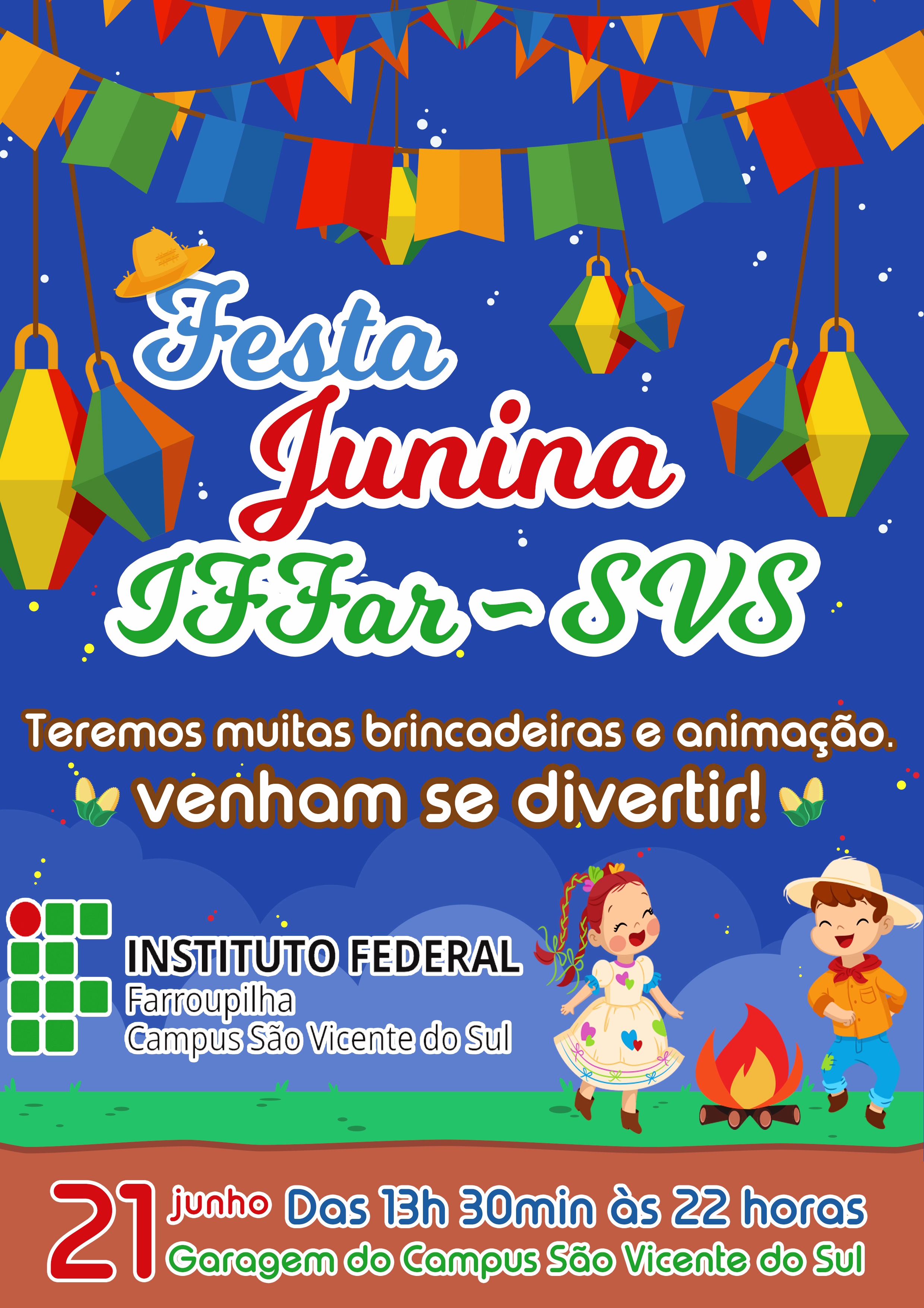 No próximo dia 21, na sede do Campus, acontecerá a tradicional Festa Junina, organizada pelos servidores e estudantes. O evento é aberto também para participação da comunidade externa.