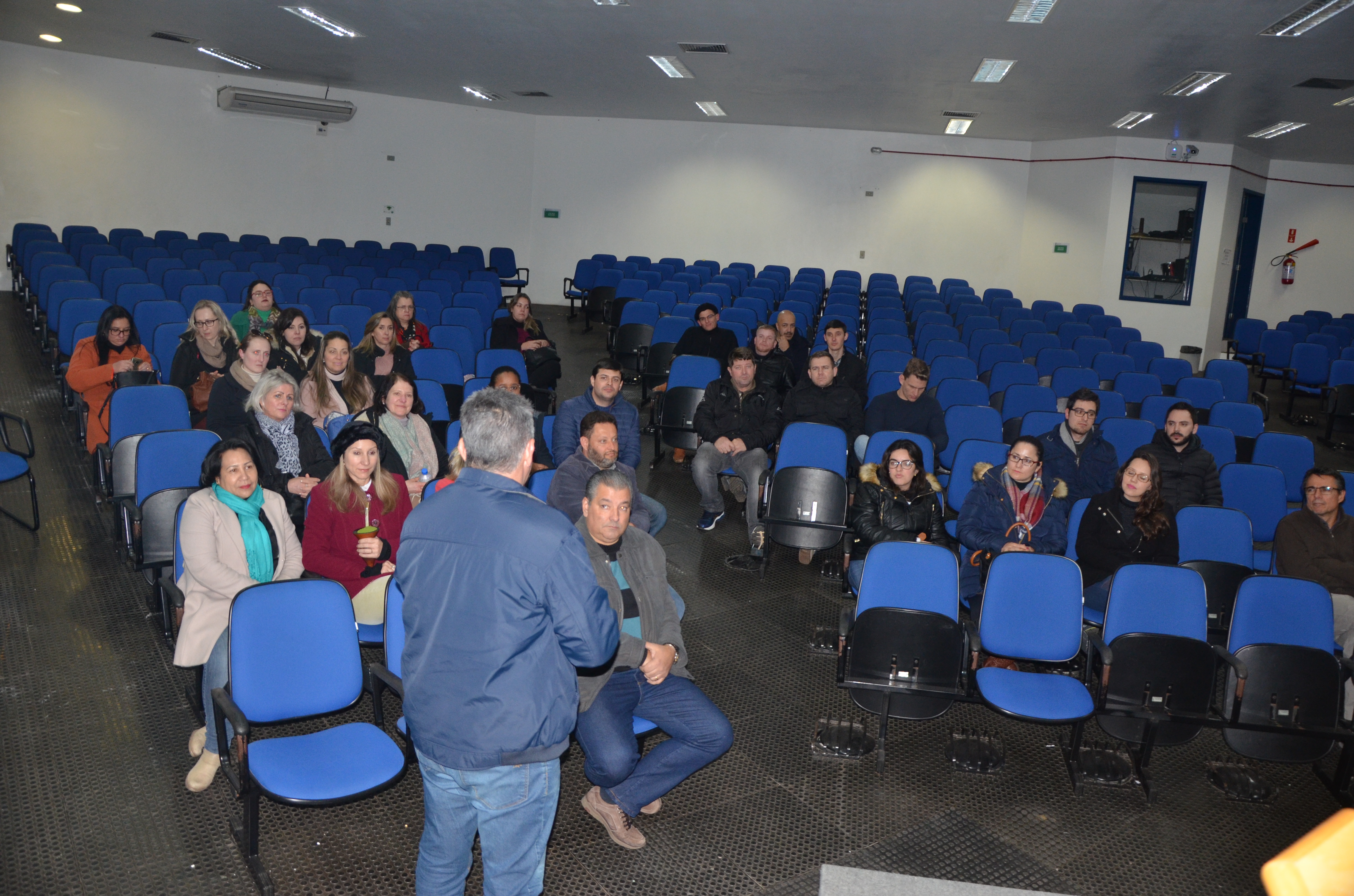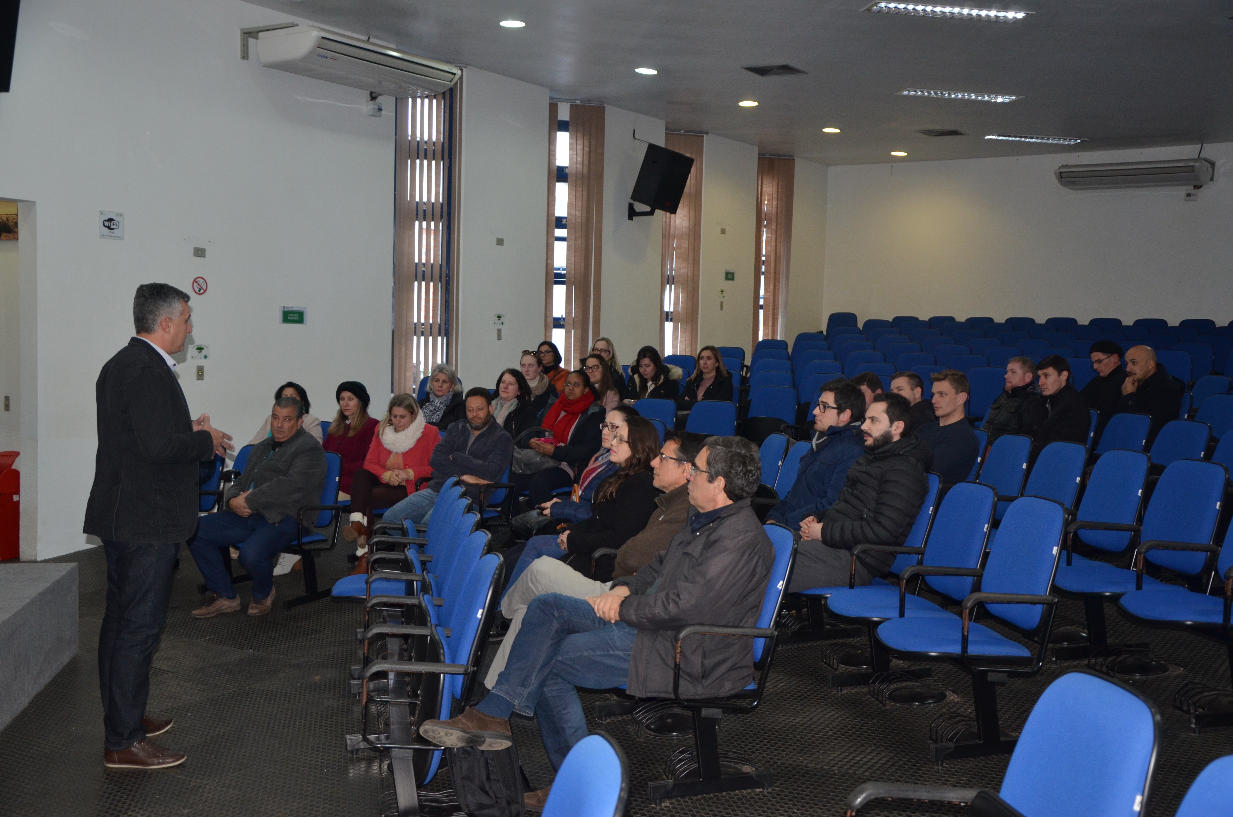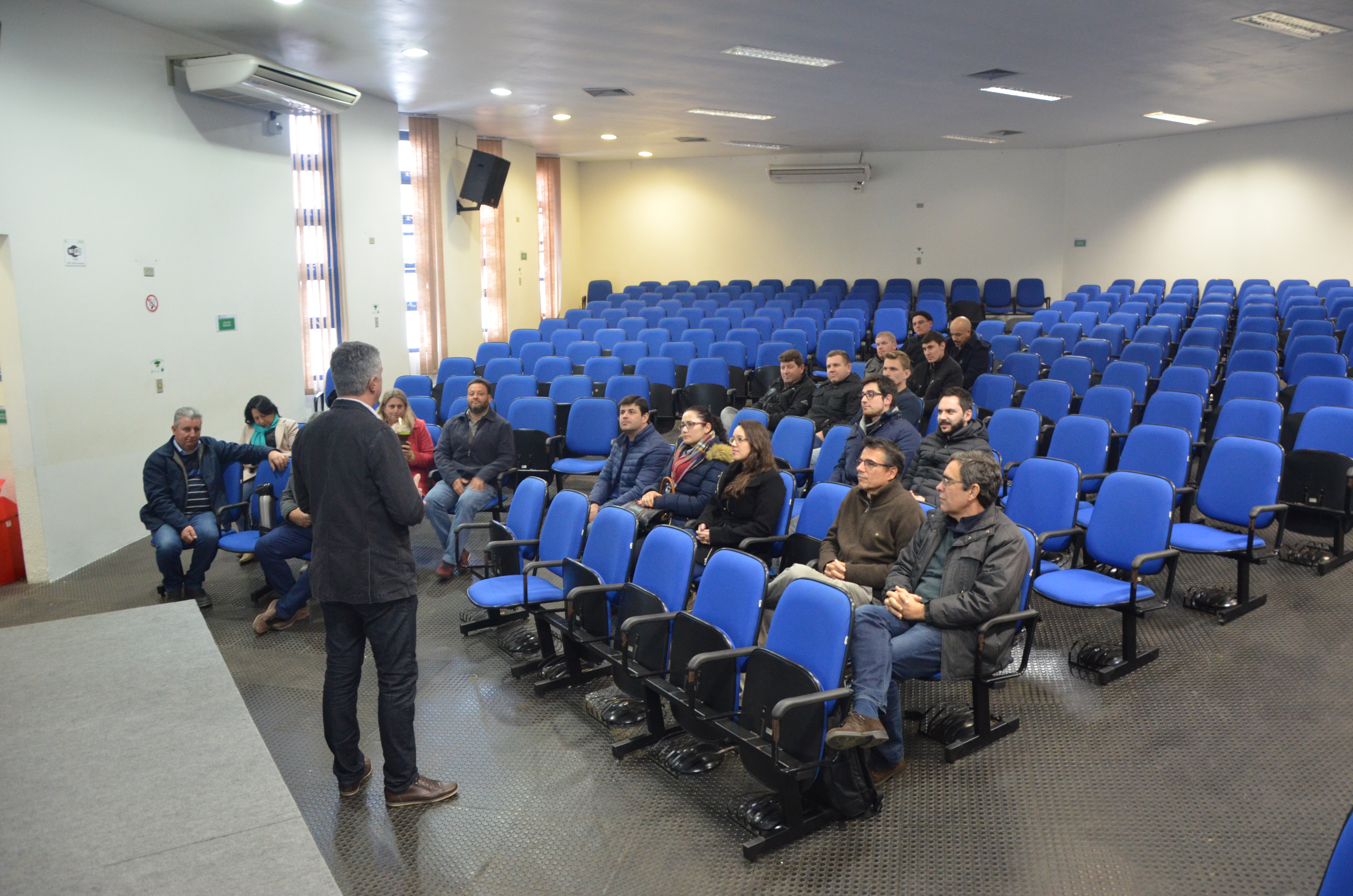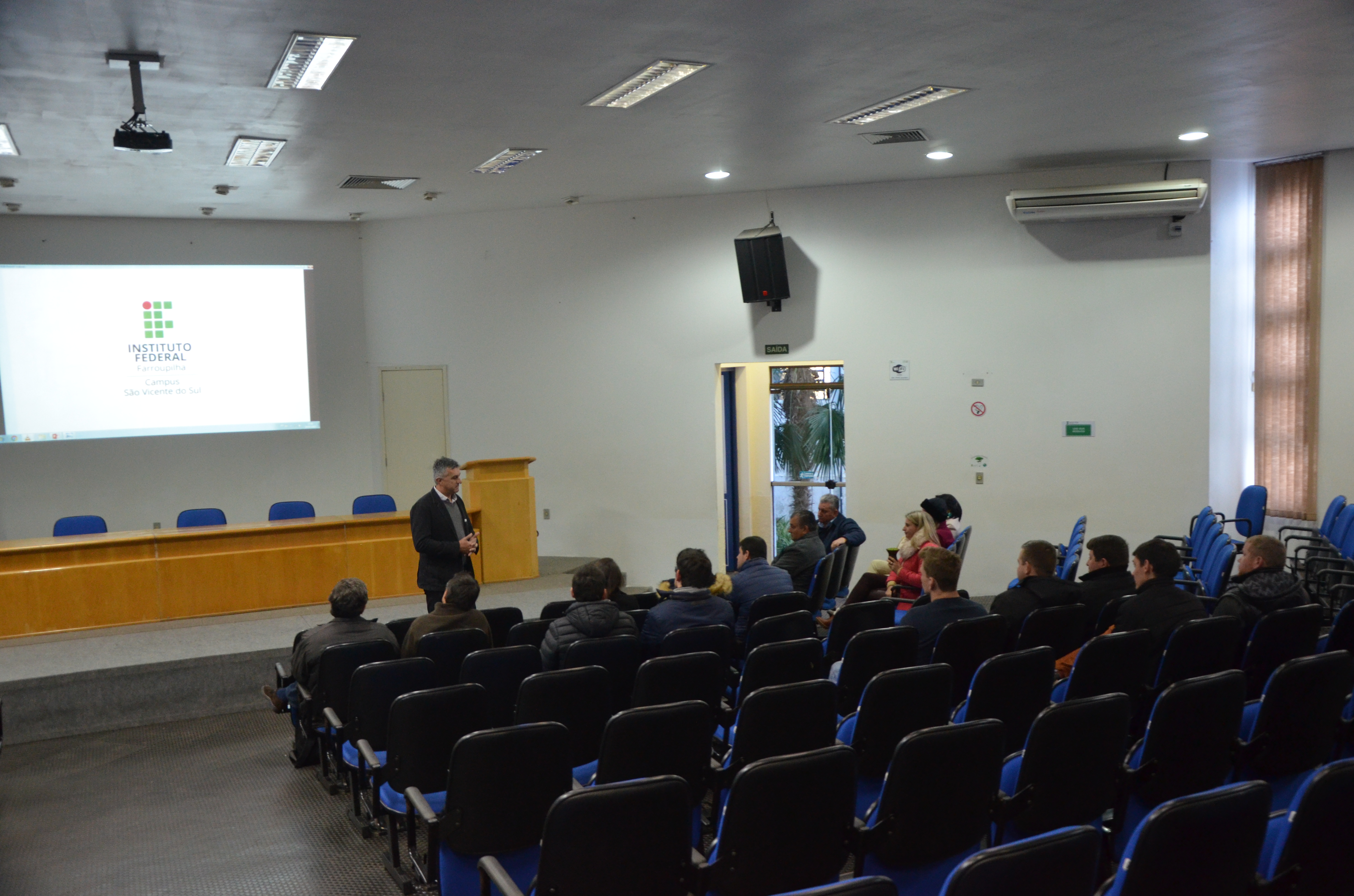 O Diretor Geral em exercício João Flávio Cogo Carvalho, o diretor da DPEP Fabiano Damasceno e da DAD Gilson Parodes receberam os visitantes no Auditório Central saudando os visitantes, falando um pouco do Campus e apresentando um vídeo institucional.