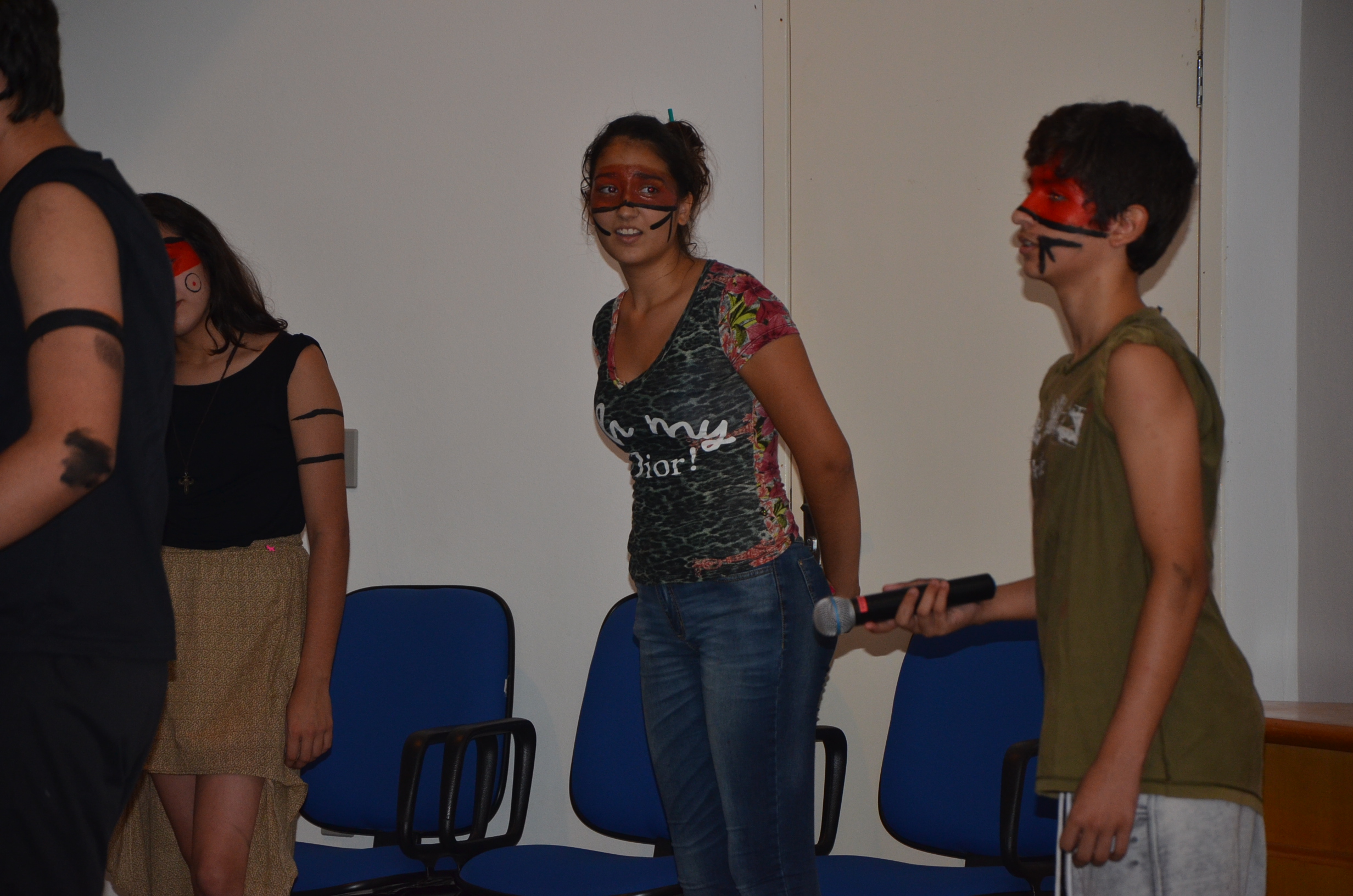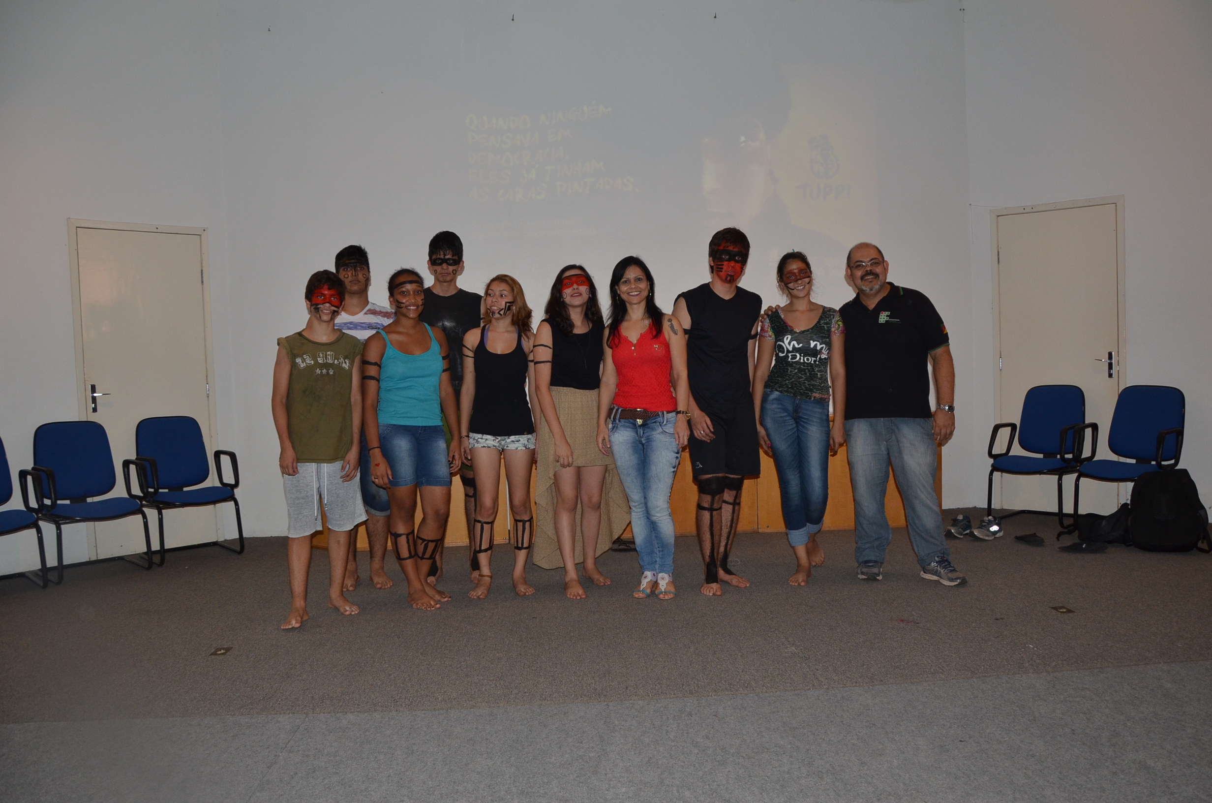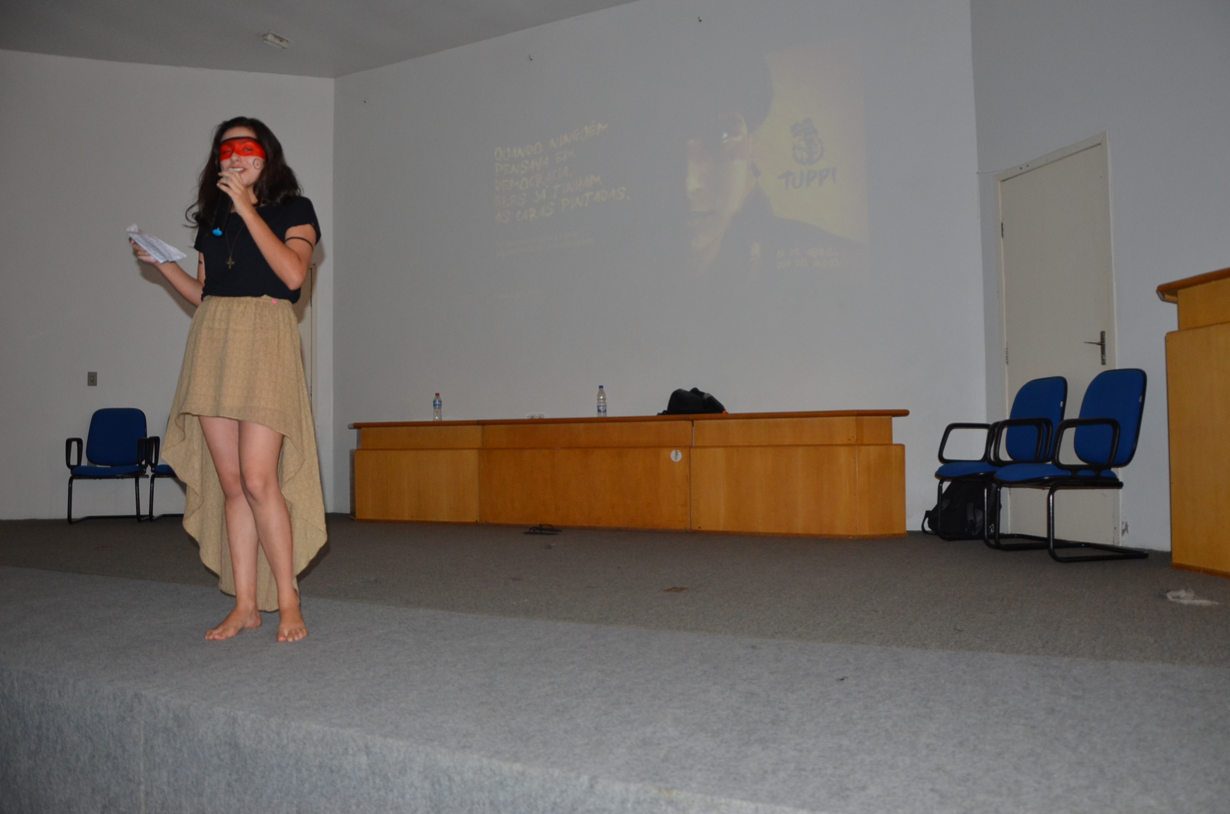 Com a participação expressiva dos alunos, o auditório central do Campus foi palco de uma bela e dinâmica atividade cultural, na qual um grupo de alunos idealizou e realizou a exposição de músicas e vídeos, que culminou com leituras dramáticas de textos poéticos, em tom de denúncia sobre a realidade dos indígenas brasileiros.