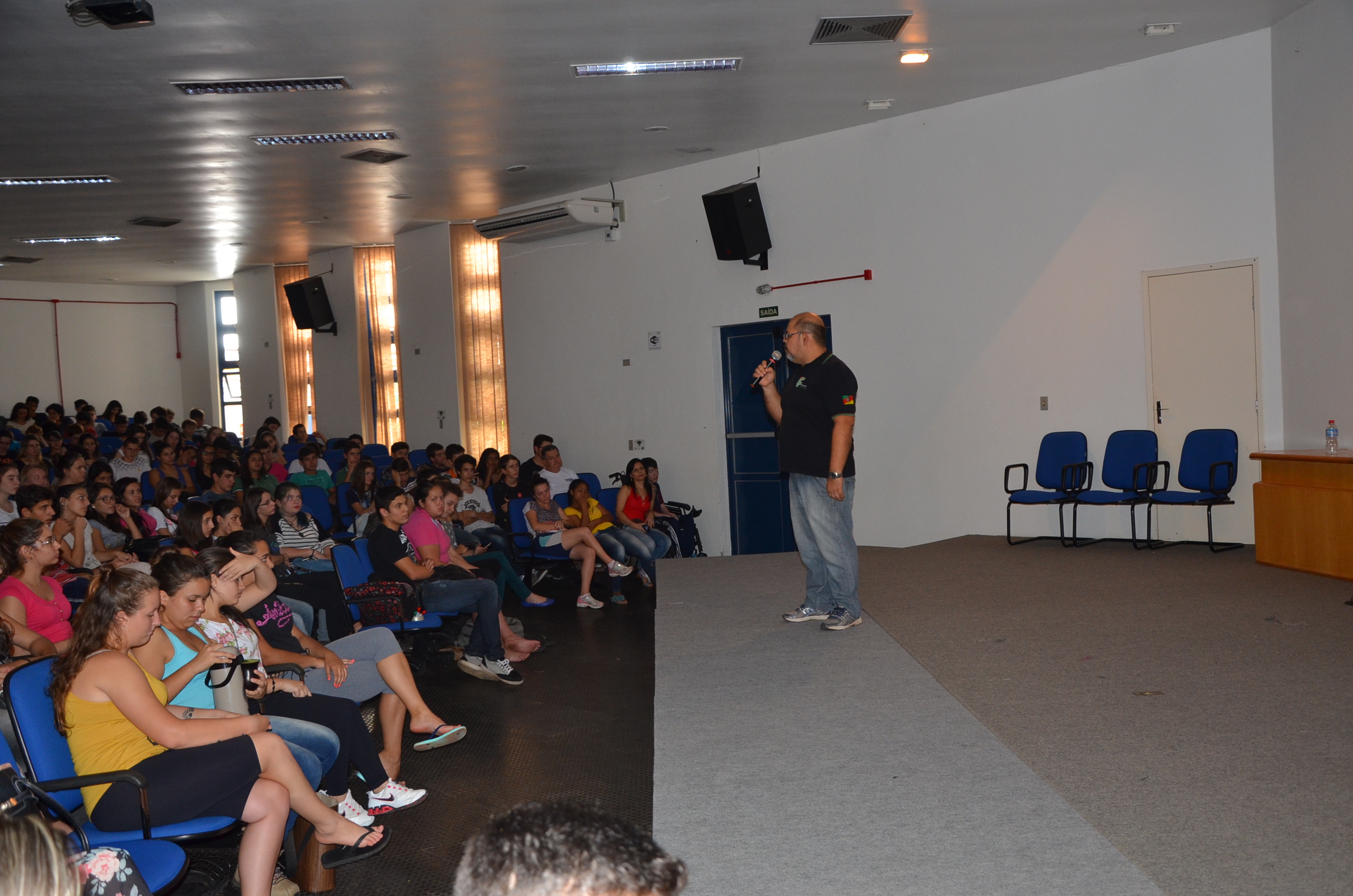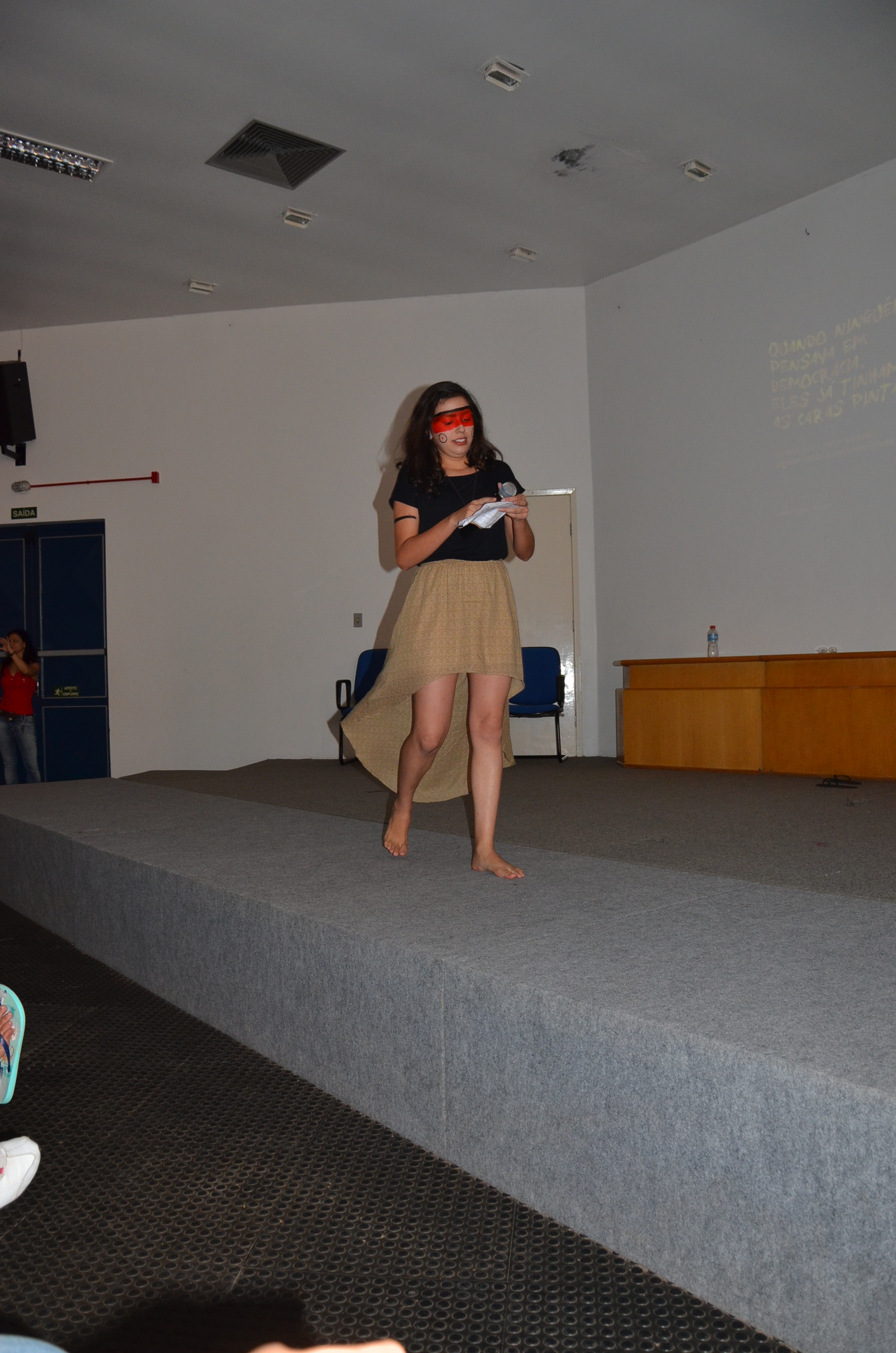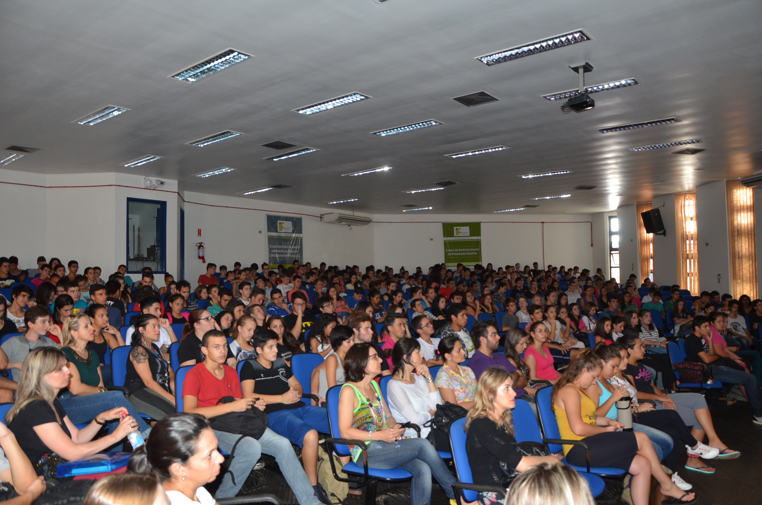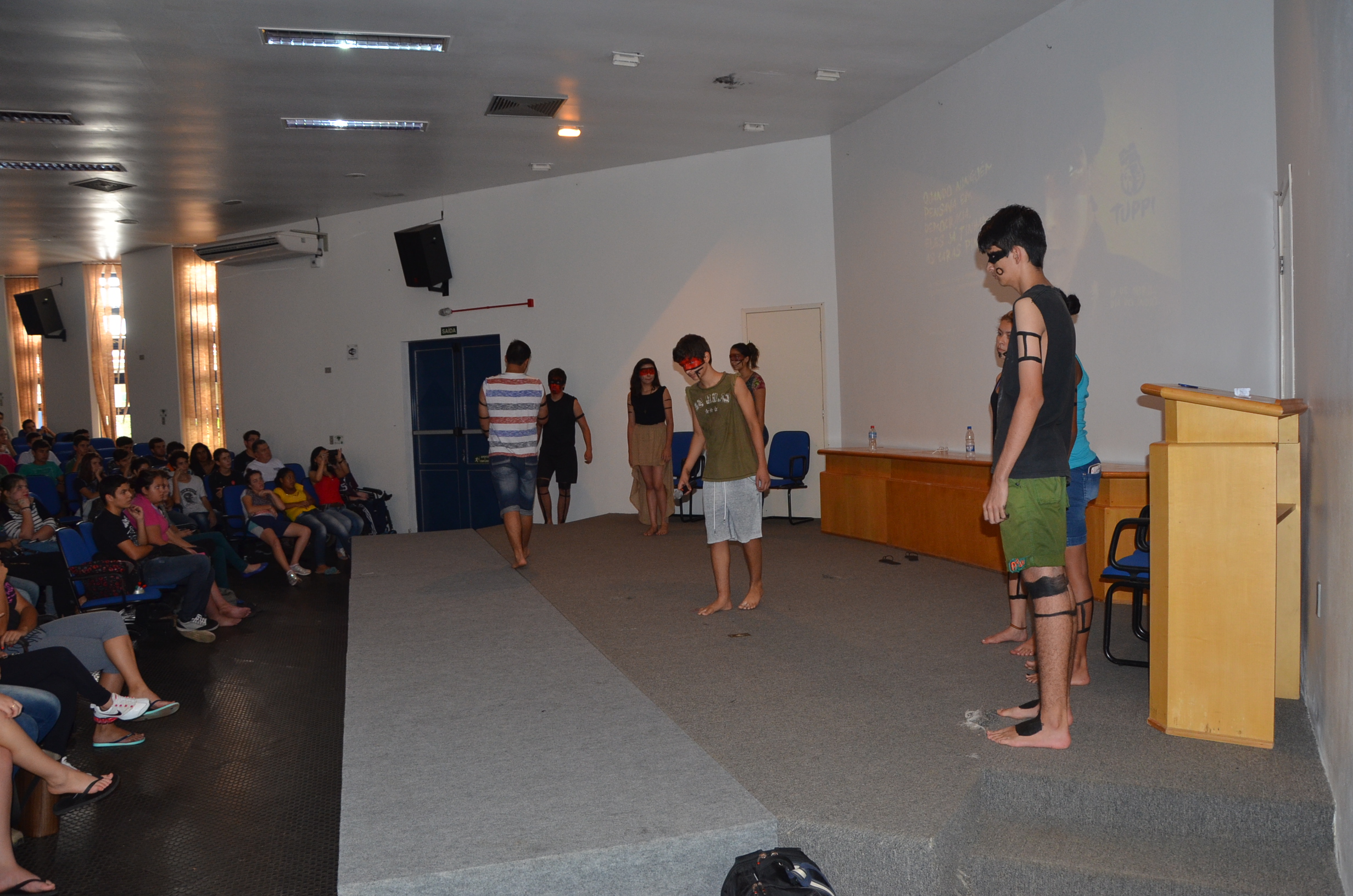 Com a participação expressiva dos alunos, o auditório central do Campus foi palco de uma bela e dinâmica atividade cultural, na qual um grupo de alunos idealizou e realizou a exposição de músicas e vídeos, que culminou com leituras dramáticas de textos poéticos, em tom de denúncia sobre a realidade dos indígenas brasileiros.