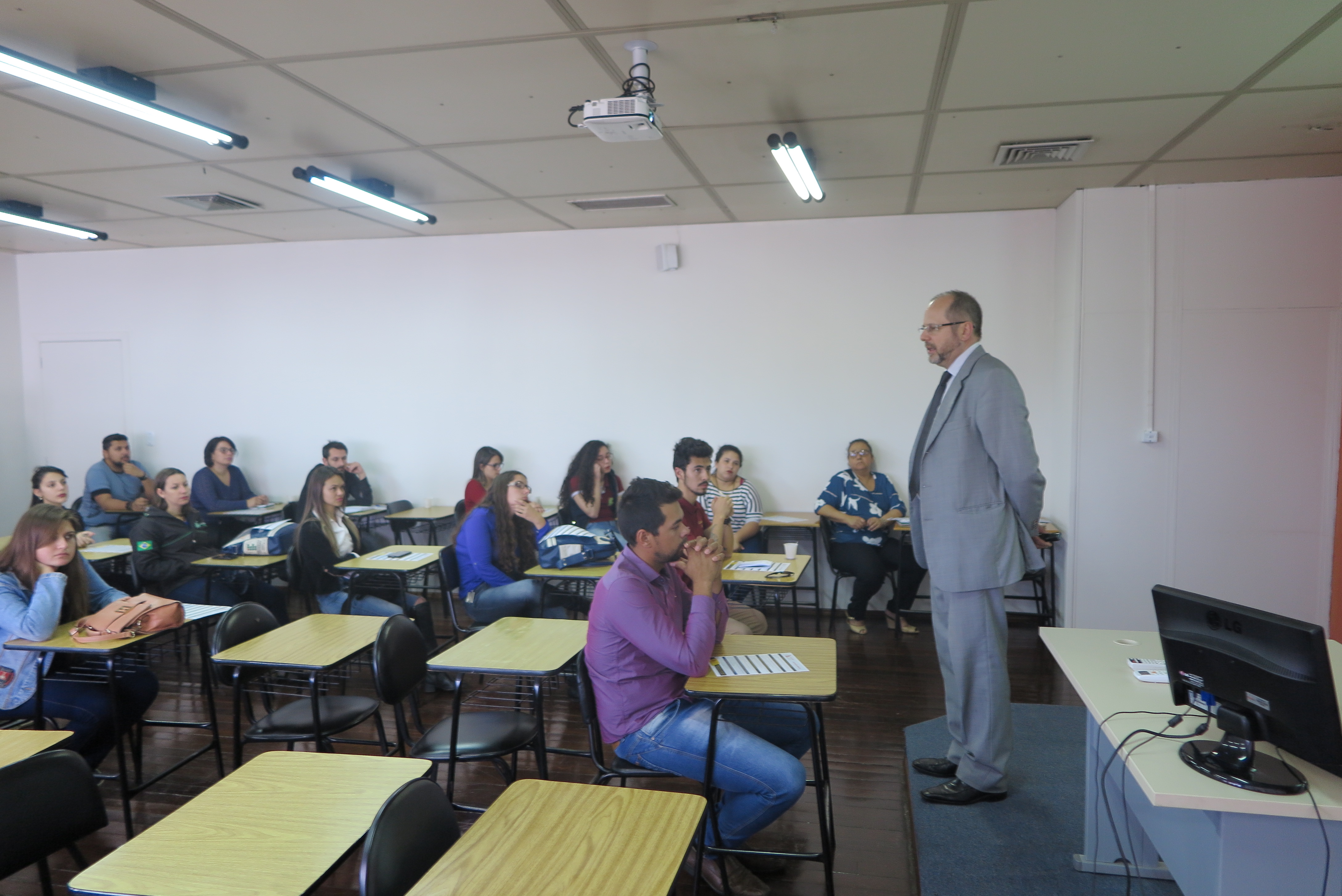 Os alunos foram recebidos pelo Diretor da Escola, Desembargador Cláudio Luís Martinewski, que ao apresentar o funcionamento da Instituição, ressaltou aos visitantes, a convergência entre o Direito e as carreiras administrativas. “É do Direito que emanam todos os deveres dos administradores e gestores públicos” frisou o Dr. Martinewski.