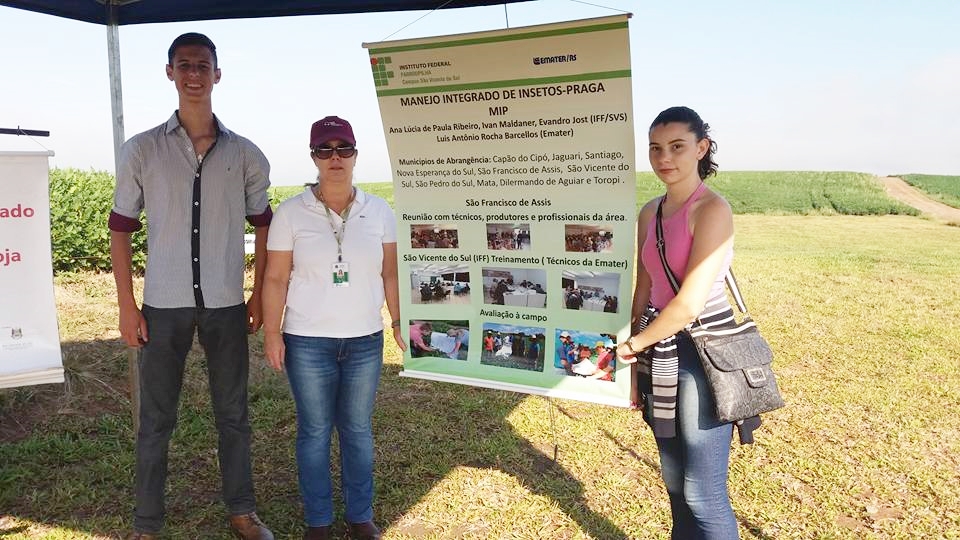 Realizado como atividade de extensão e em parceria com a Emater/Ascar, o projeto abrange 25 municípios da Região Central do Estado do Rio Grande do Sul e tem o objetivo de orientar os produtores na identificação das espécies de insetos e o uso correto de agrotóxicos utilizados na cultura da Soja para o controle das pragas.