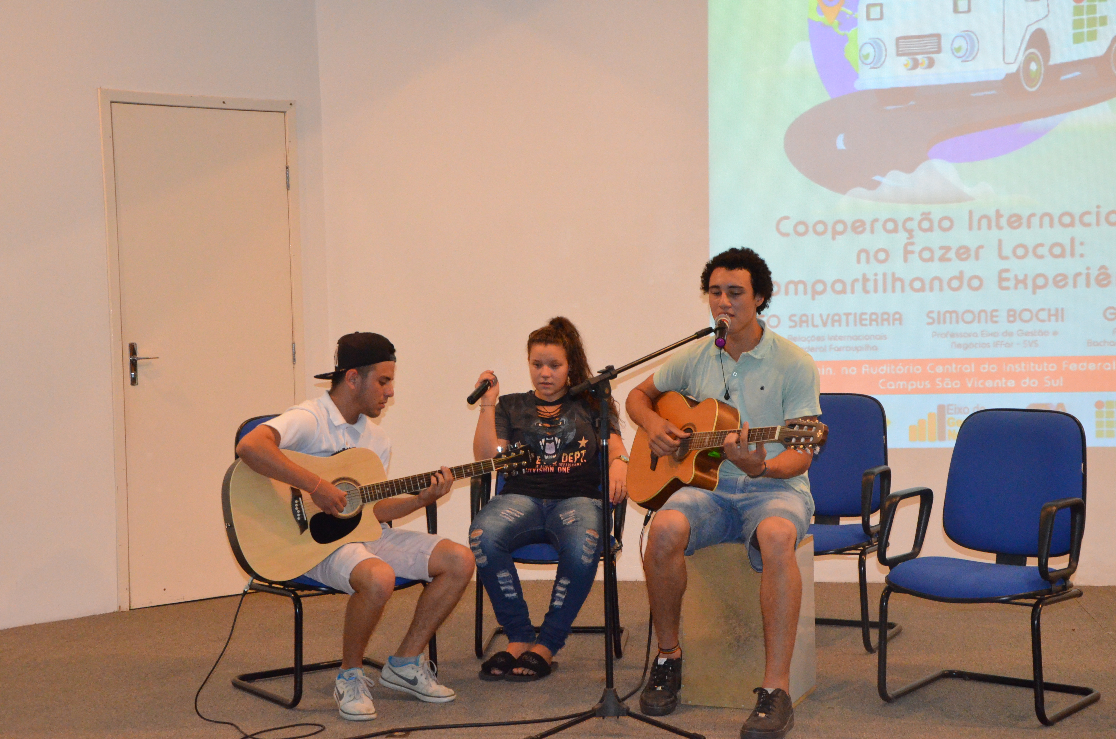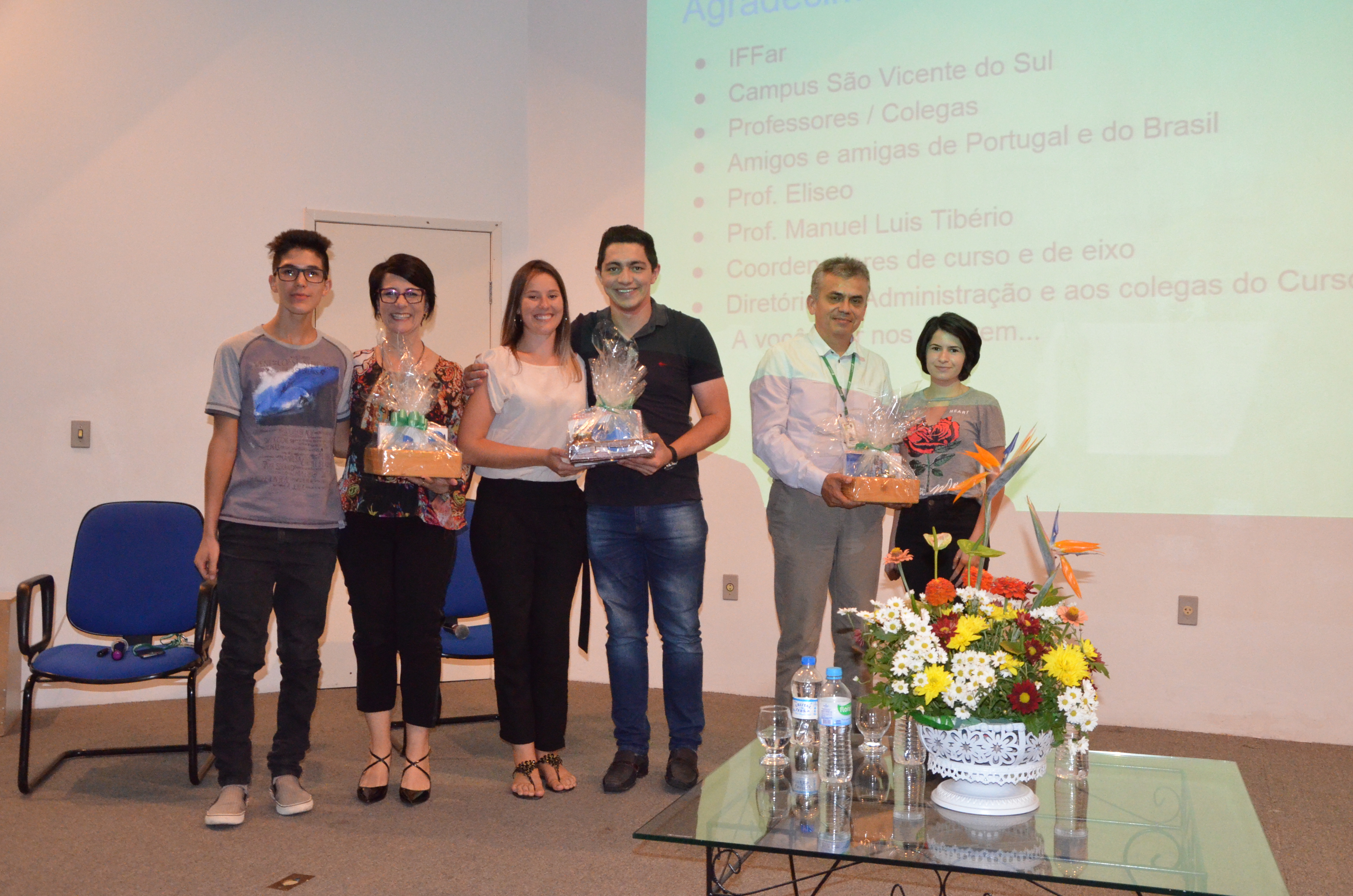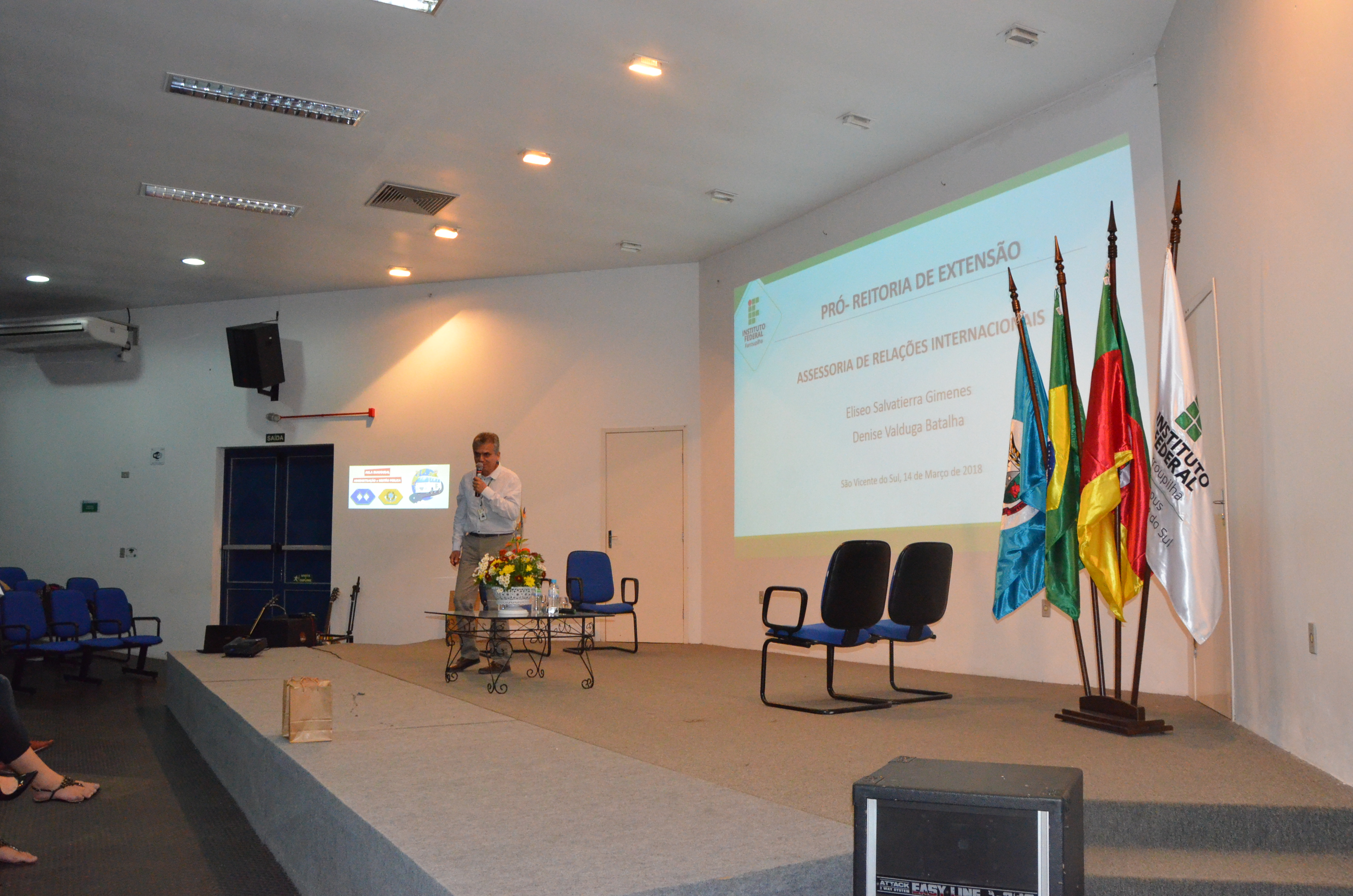 Após os participantes, tiveram a oportunidade de ouvir o Assessor de Relações Internacionais do Instituto Federal de Educação, Ciência e Tecnologia Farroupilha, Eliseu Salvatierra, esclarecendo sobre as possibilidades de intercâmbios. Logo após, tivemos a oportunidade de ouvir sobre a experiência da Professora Simone Bochi Dorneles e da acadêmica Giseli Simi, que estiveram em Intercâmbio em Portugal no ano de 2017, financiado pelo IFFar, na Universidade de Trás-os-montes e Auto Douro (UTAD).