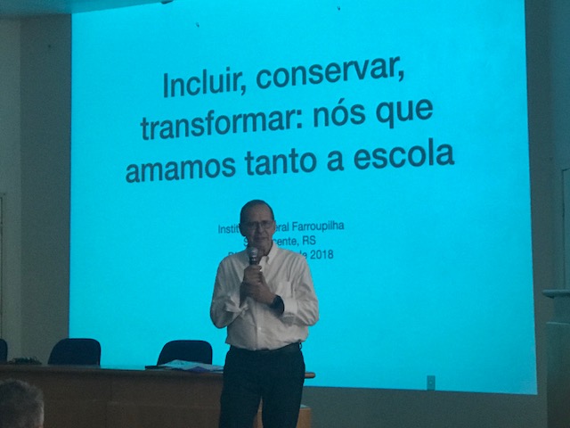 A Coordenação das Ações Inclusivas (CAI) promoveu no dia onze de abril às 14h no Auditório Central a Formação de Servidores. A formação intitulada “Incluir, Conservar, Transformar: Nós que amamos tanto a escola” foi feita pelo Prof. Dr. Ronai Pires da Rocha, Licenciado em Filosofia pela Universidade Federal de Santa Maria, Mestre em Filosofia pela Universidade Federal de Santa Maria e Doutor em Filosofia pela Universidade Federal do Rio Grande do Sul. Atualmente é Professor Associado no Departamento de Filosofia da Universidade Federal de Santa Maria. Tem experiência na área de ensino de filosofia, teoria curricular e didática, filosofia da linguagem e teoria do conhecimento.