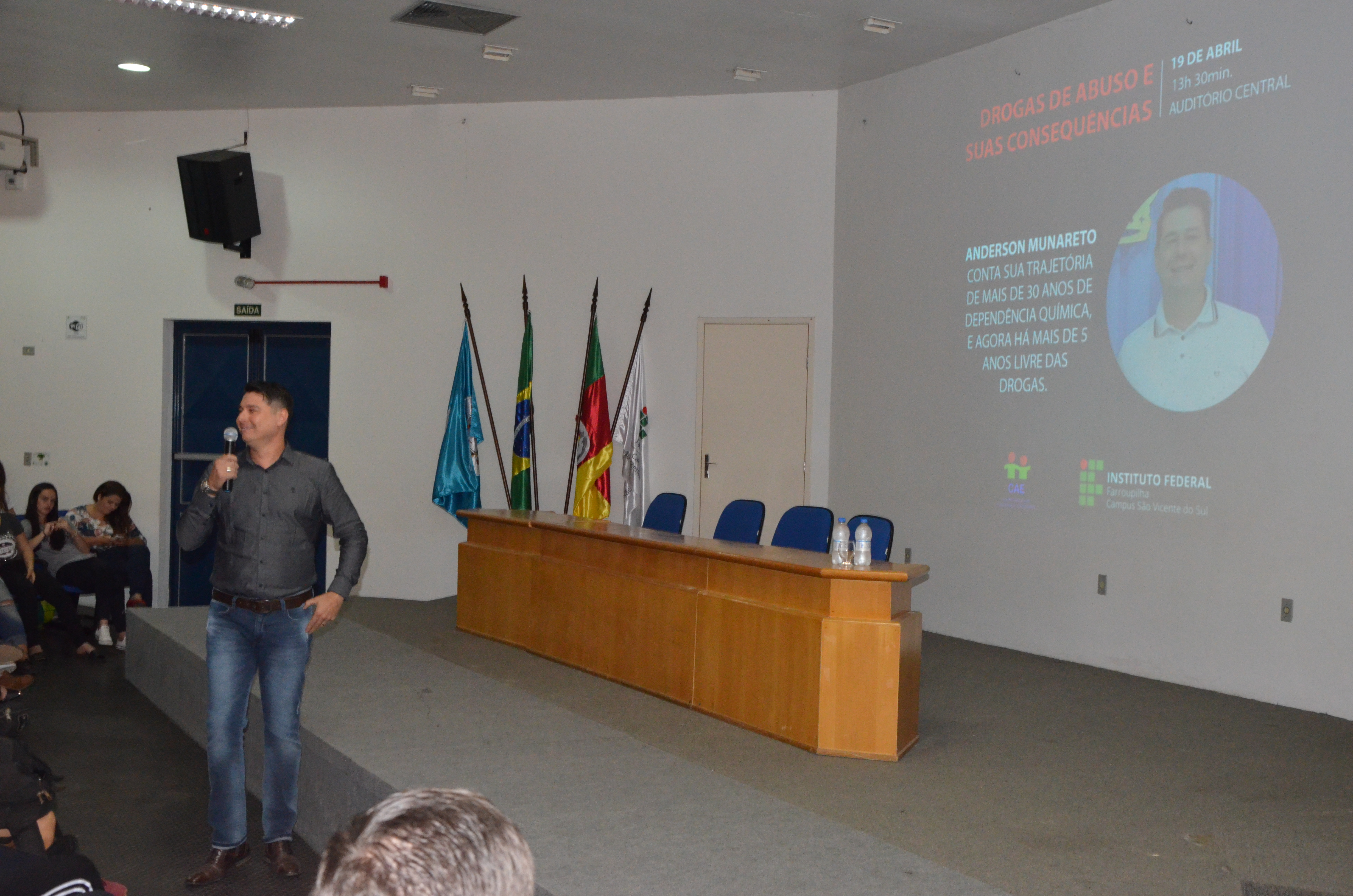 Tivemos no dia 19 de abril de 2018, no auditório do IFFar-SVS, uma palestra sobre "Drogas de abuso e suas consequências", ministrada por Anderson Munareto.
