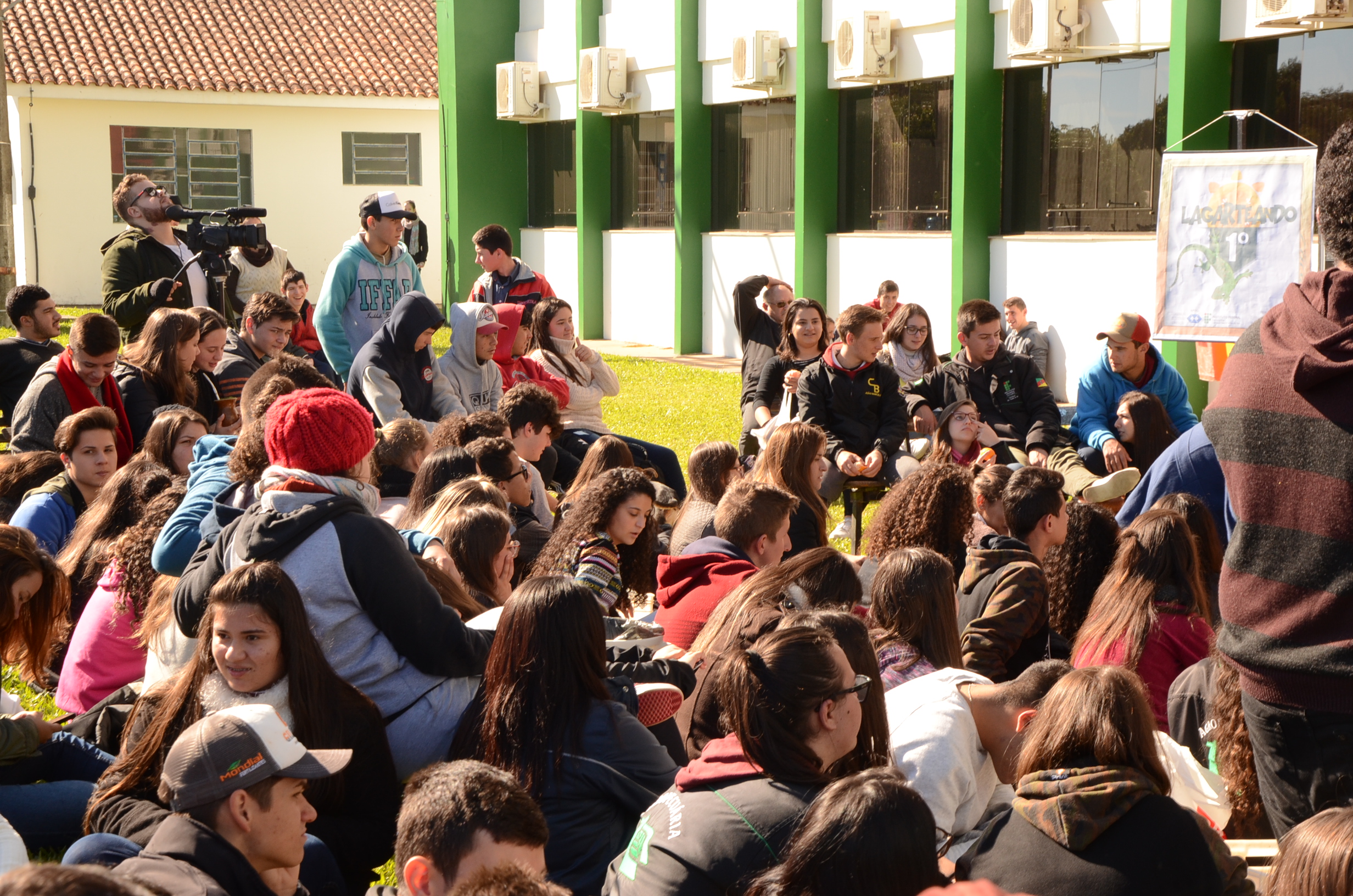 No dia 19 de junho, última terça-feira, cerca de 400 pessoas, entre estudantes de vários níveis e servidores, estiveram reunidas no horário do meio-dia para prestigiar a 1ª edição do “Lagarteando”. Este evento cultural proporcionou a comunidade escolar um momento para lagartear ao sol, tomar mate, apreciar bergamotas e laranjas, além de balançar ao som de talentos musicais do Campus São Vicente do Sul.