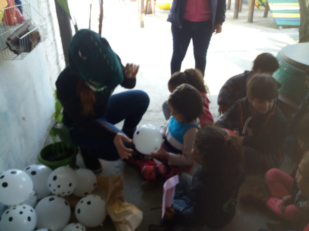 Na última sexta feira (17 de agosto), as crianças da Etapa 6 da Escola Tia Nina, no bairro Francisca Tarrago, tiveram uma atividade diferente: Participaram de um dia Jurássico. A convite da professora da turminha, a professora Drika Vieira Lima do IFFAR organizou uma série de atividades relacionadas a dinossauros, como sessão de filme, identificação de pegadas, construção de dinossauros com balão de festas e quebra de ovos de dinossauros. O IFFAR agradece às professoras e toda a equipe da escola pela recepção.