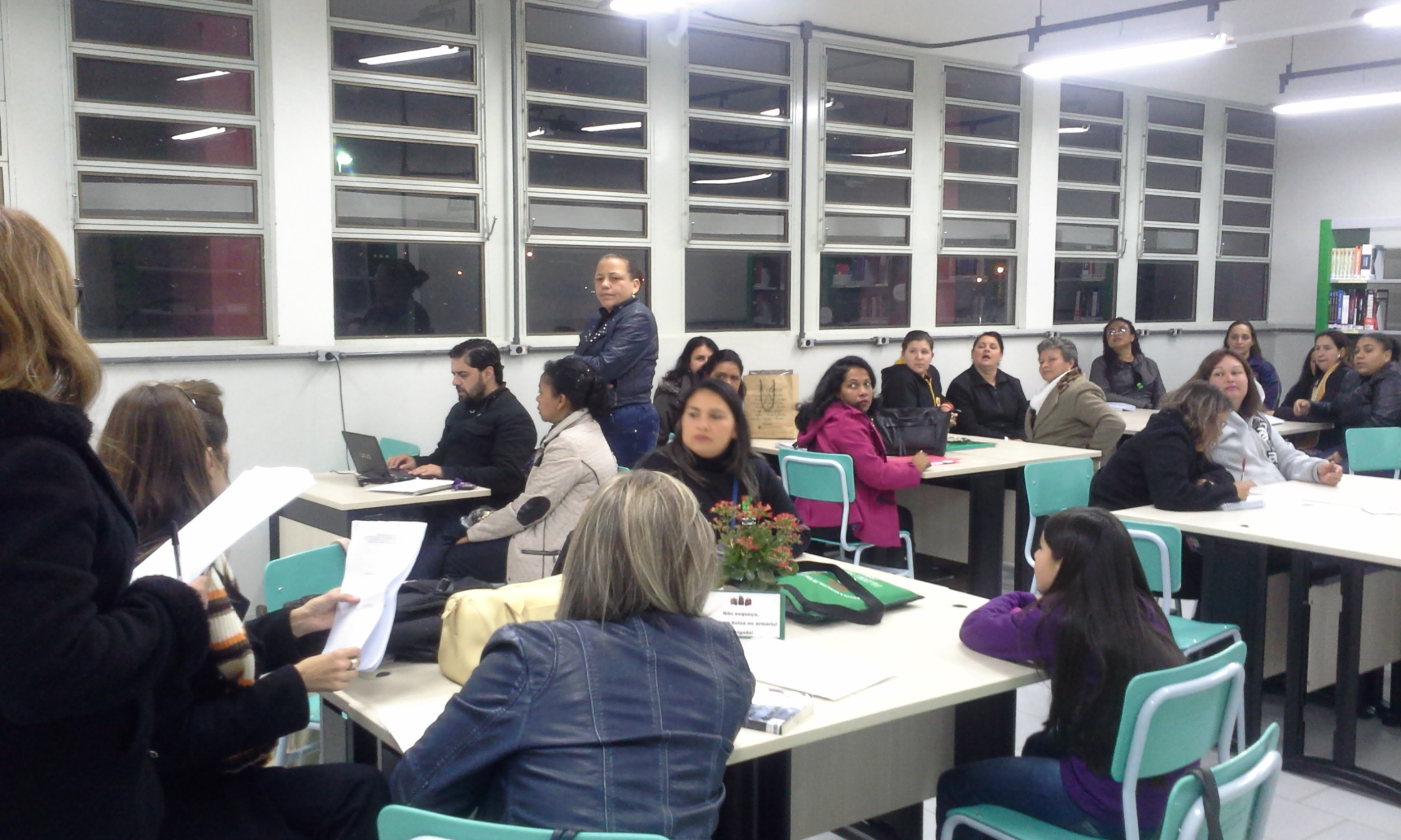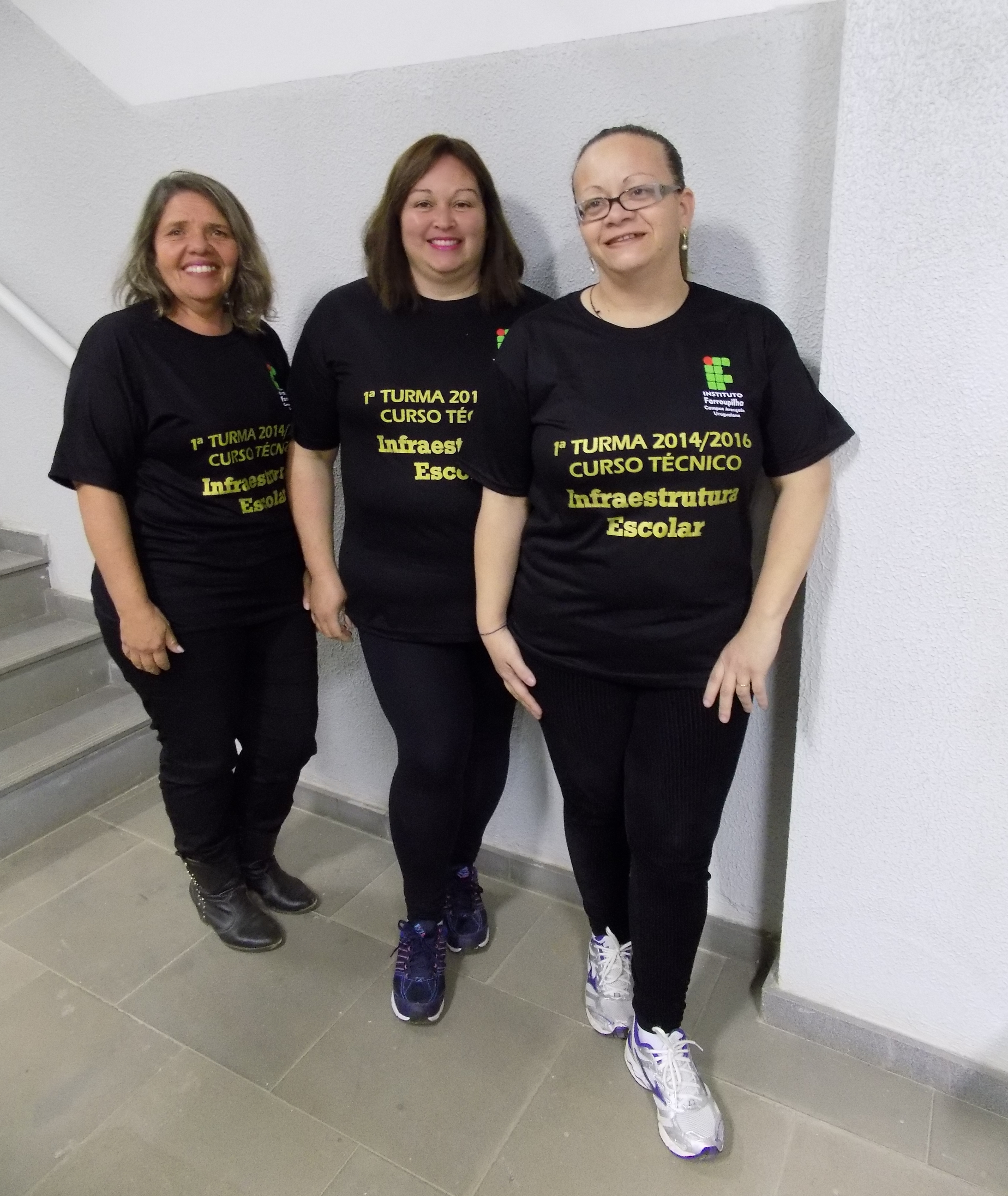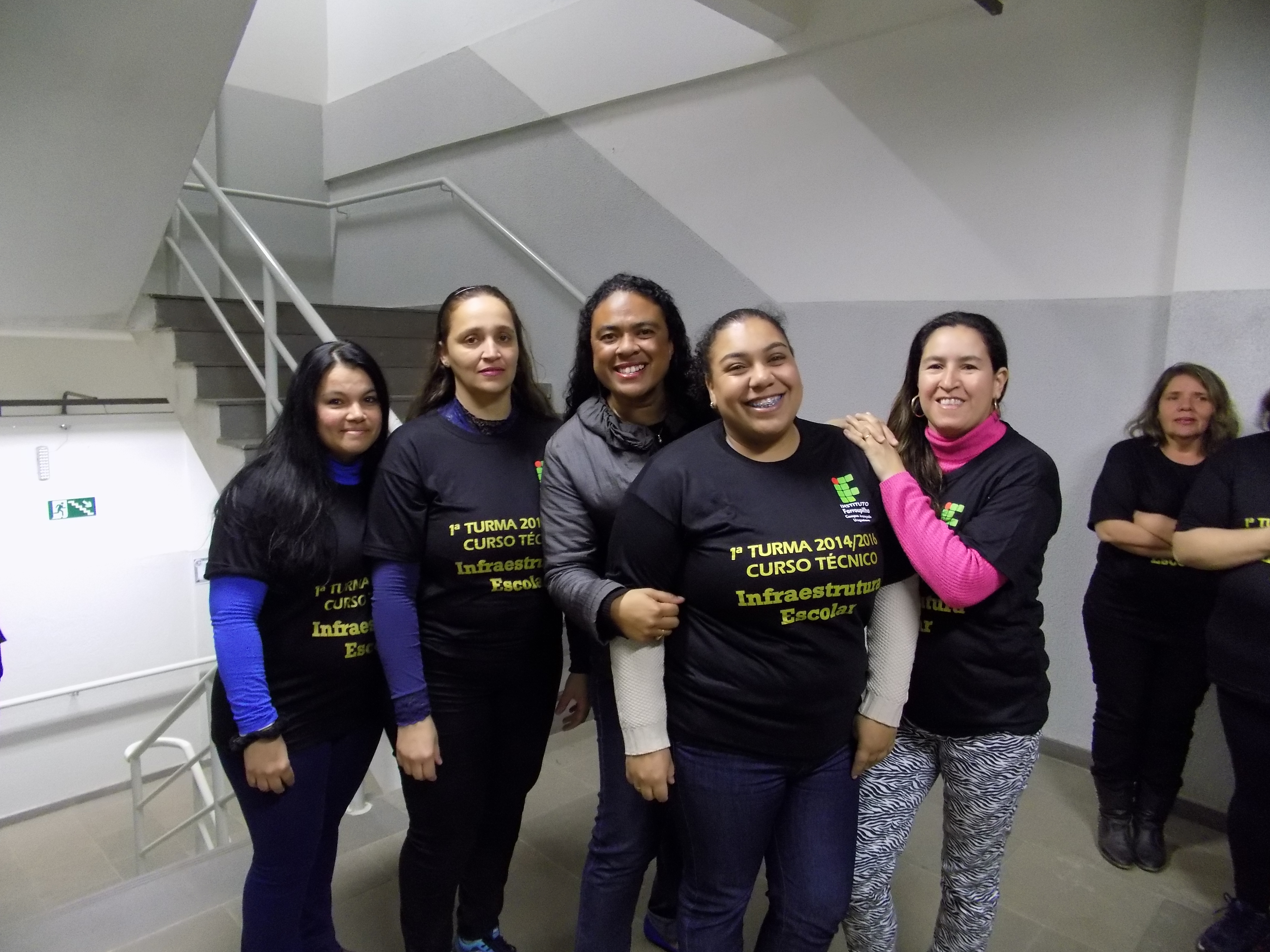 Alunos do Curso Infraestrutura Escolar reúnem-se na biblioteca para finalizar as atividades e começam a organizar a formatura. Na ocasião, fizeram as fotos da turma no Campus.