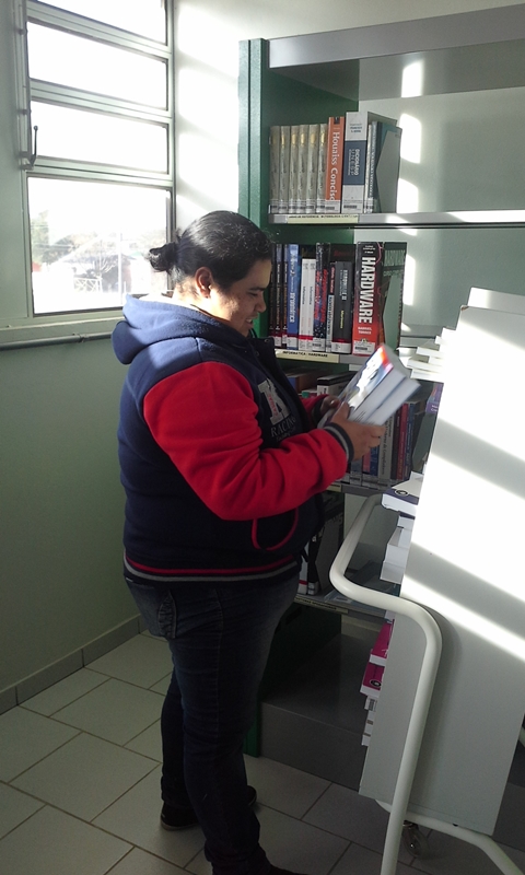 As alunas do curso de Informática subsequente auxiliam no processamento técnico dos mesmos.