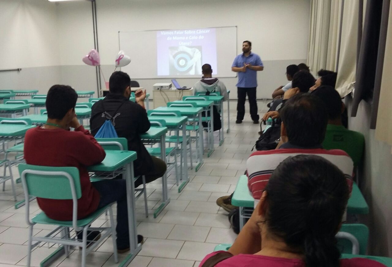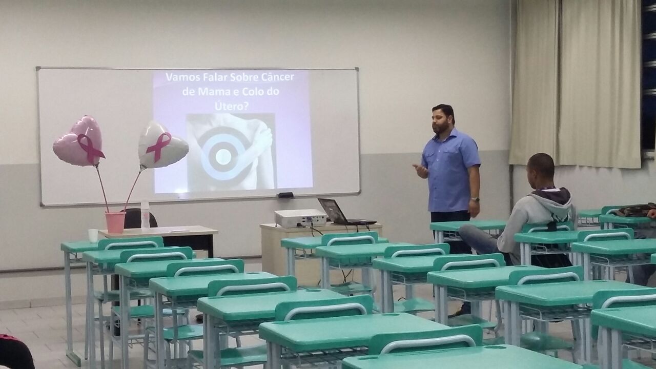 Hoje recebemos mais um profissional comprometido com as ações referentes ao Outubro Rosa para conversar com nossos alunos do Técnico em Informática.