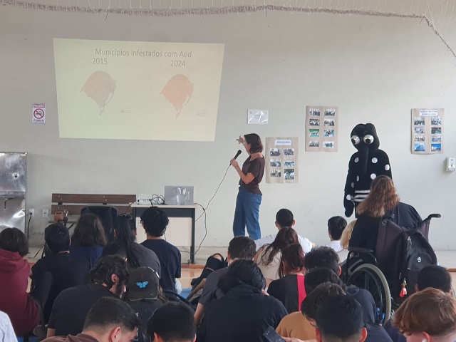 Com o aumento do número de casos de dengue no município, nesta quarta feira, 19/06/2024 o campus Uruguaiana, através do NUGEA, promoveu ação educativa, em parceria com a Secretaria de Saúde do município. Na ocasião a veterinária Laura Massia, responsável pela Vigilância Ambiental do município e os agentes de endemias Fábio Lima e Verônica Pons embarcaram em uma jornada educativa onde nossos alunos tiveram a oportunidade de conhecer mais sobre a dengue, compreendendo não apenas os sintomas e os riscos da doença, mas também sobre o vetor responsável pela transmissão.