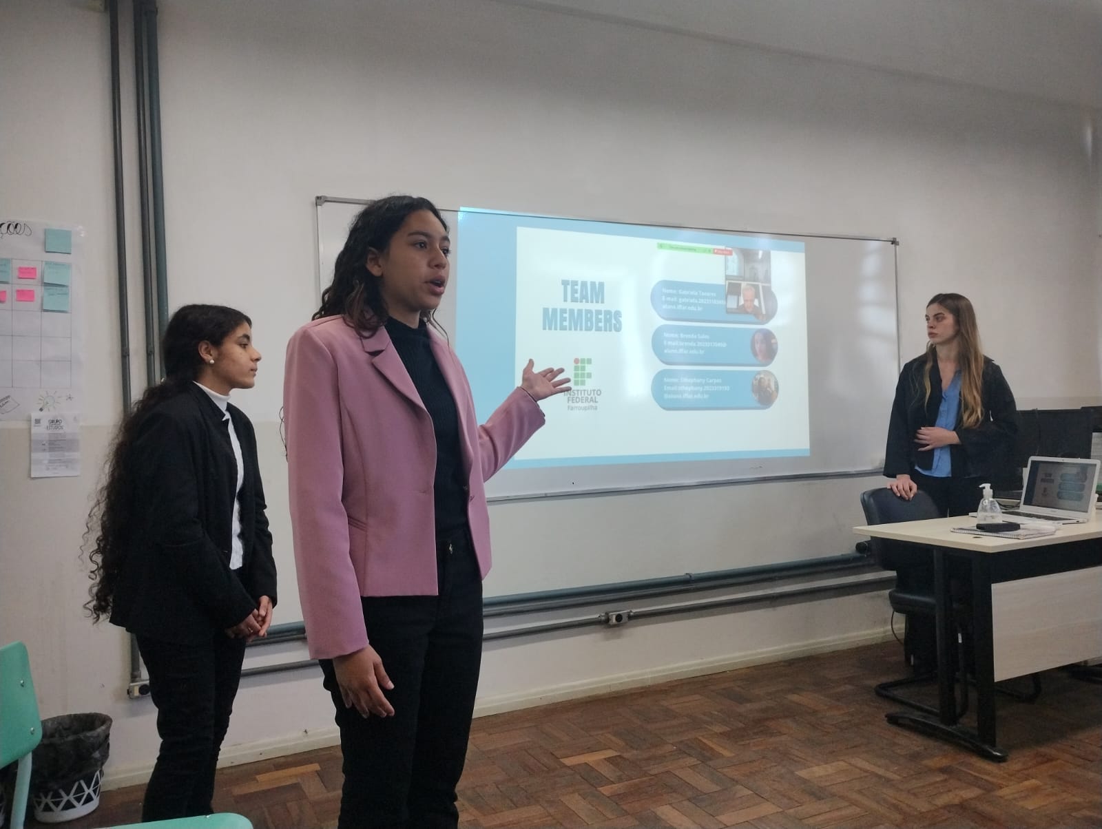 A Prática Profissional Integrada Internacional "Design Thinking - Arquitetos do Amanhã" é resultado de uma parceria com a One World United & Virtuous 🌎 (EUA), a Escola do Legislativo de Uruguaiana e a Associação de Catadores de Lixo Amigos da Natureza (ACLAN - Uruguaiana), e foi desenvolvida com as turmas de segundos anos dos nossos cursos técnicos integrados em Administração e Informática do campus Uruguaiana, por um coletivo de docentes e envolvendo os Núcleos de Ações Internacionais (NAI) e de Gestão Ambiental (NUGEA). Ao final do trabalho, que durou de fevereiro a agosto, os estudantes apresentaram as soluções locais desenvolvidas por suas equipes para uma banca constituída pelos professores, pelo co-fundador da One World United & Virtuous Joseph Carvin (EUA), por Ricardo Simas (Diretor da Escola do Legislativo) e por Guilherme Perlin (InovMun, ecossistema de inovação de Uruguaiana). Cada equipe apresentou como sua solução responde a um problema da civilização (falta de pacificação, usos da Inteligência Artificial e problemas de sustentabilidade socioambiental), com foco na cidade de Uruguaiana. Foram apresentadas 33 soluções locais, sendo que uma delas já está pronta para uso. Trata-se de um aplicativo que traz informações sobre as rotas e horários de ônibus da cidade. Tendo em vista o contexto dessa prática profissional integrada internacional, os estudantes Arthur do Amaral Jacques, Eduardo Antunes da Silva e Samuel Alvarenga Prates, da turma INFO 22 (2º ano do Curso Técnico Integrado em Informática), buscaram trazer uma solução para a problemática do transporte público na cidade. A pesquisa de dados que eles realizaram, através de entrevistas e de ida a campo, apontou para a carência de um sistema de informação eficiente na relação população- transporte público. De modo específico, eles observaram a inexistência de um mapa virtual que traga as rotas das linhas e os horários de cada linha, prevendo os horários estimados em cada parada durante todo o trajeto. Nesse sentido, eles viram a oportunidade de criar um mapeamento das linhas com a adição de horários estimados de saída e chegada e durante o trajeto, considerando, se possível, disponibilizar um rastreamento em tempo real do veículo de transporte coletivo. O projeto pode ser acessado aqui: https://drive.google.com/file/d/1o7XoBmHJK_DMuUcfdlDf9ohE5KzRNzaY/view?usp=sharing. O texto está em inglês, como parte da PPI Internacional para a disciplina de Língua Inglesa, mas, ao final da apresentação, há um QRCode para o aplicativo, que está disponível em Língua Portuguesa.