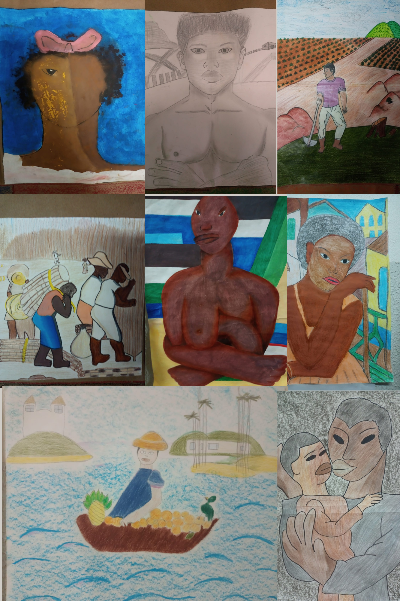 Para finalizar o mês da Consciência Negra, entre as ações do NEABI, a Professora de Arte, Márcia Dall’Agnoll organizou a Mostra artística sobre a representação do negro e da negra na arte brasileira. As obras dos artistas Arthur Bispo Do Rosário, Rubem Valentim, Abdias Do Nascimento, Mestre Didi, Heitor dos Prazeres, Tarsila do Amaral, Di Cavalcanti, Anita Malfatti, Lavar Segall, Cândido Portinari e Lasar Segall que retratam a arte moderna e inovadora com temáticas referente as religiões Afro-Brasileiras, as favelas, as festas populares e a formação do povo brasileiro foram reproduzidas pelos alunos dos Cursos Integrados em formato de pintura, desenho, cartazes, bordados e permaneceram em exposição nos corredores do campus.