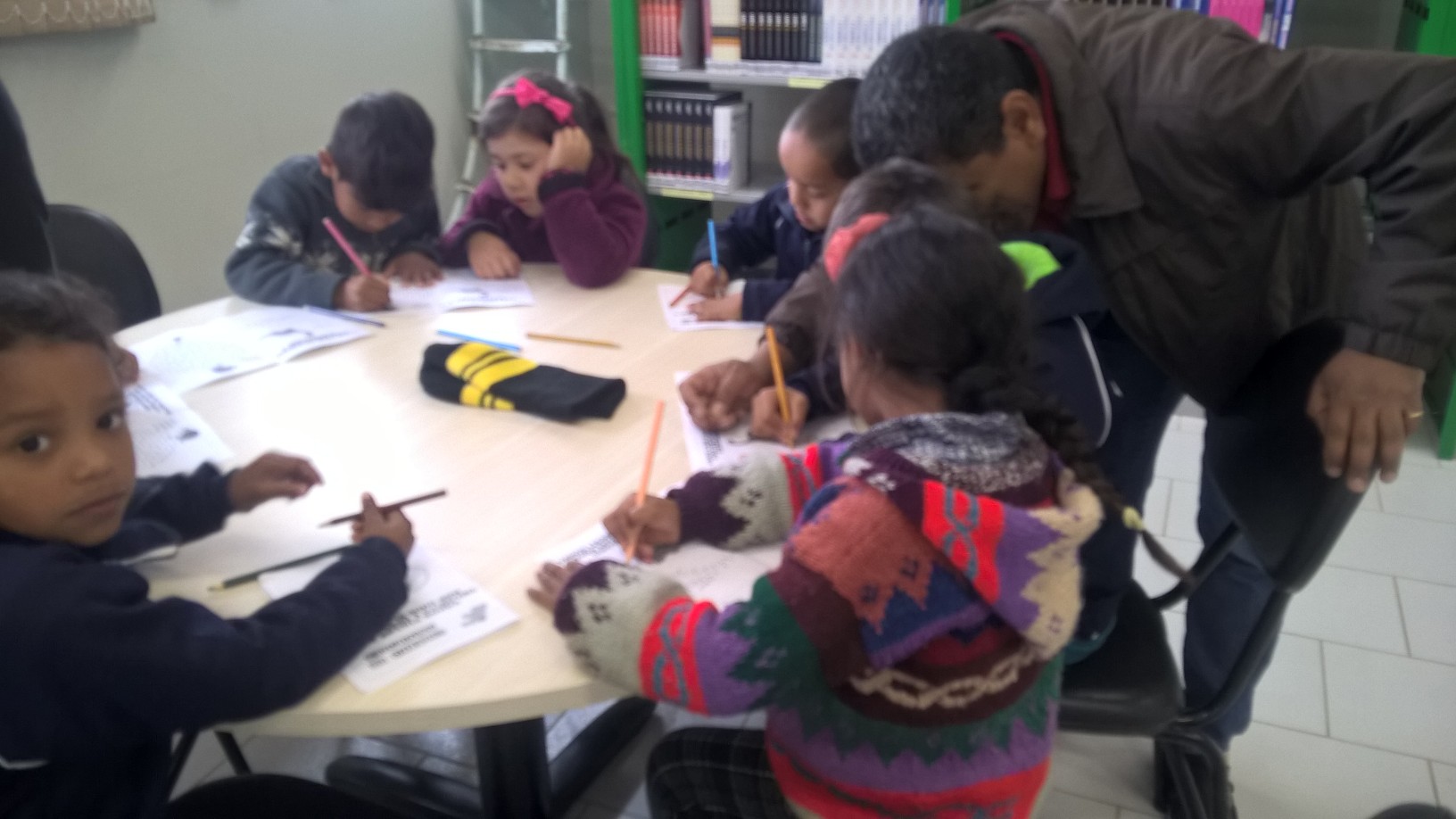 Na manhã do dia 30 de agosto, estudantes da Etapa 5 da EMEI Marília Sanchotene Felice visitaram a biblioteca do Instituto para realizar uma atividade sobre o tempo geológico com ênfase em dinossauros. Durante a atividade, as crianças assistiram a vídeos, montaram quebra-cabeças, aprenderam a reconhecer alguns tipos de patas de dinossauros e pintaram fósseis.