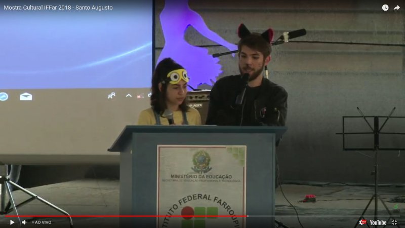 Nesta sexta-feira (31), cerca de 350 estudantes do Instituto Federal Farroupilha participam da sexta edição da Mostra Cultural do IFFar, no Campus Santo Augusto. A WebTV do IFFar está transmitindo o evento ao vivo.