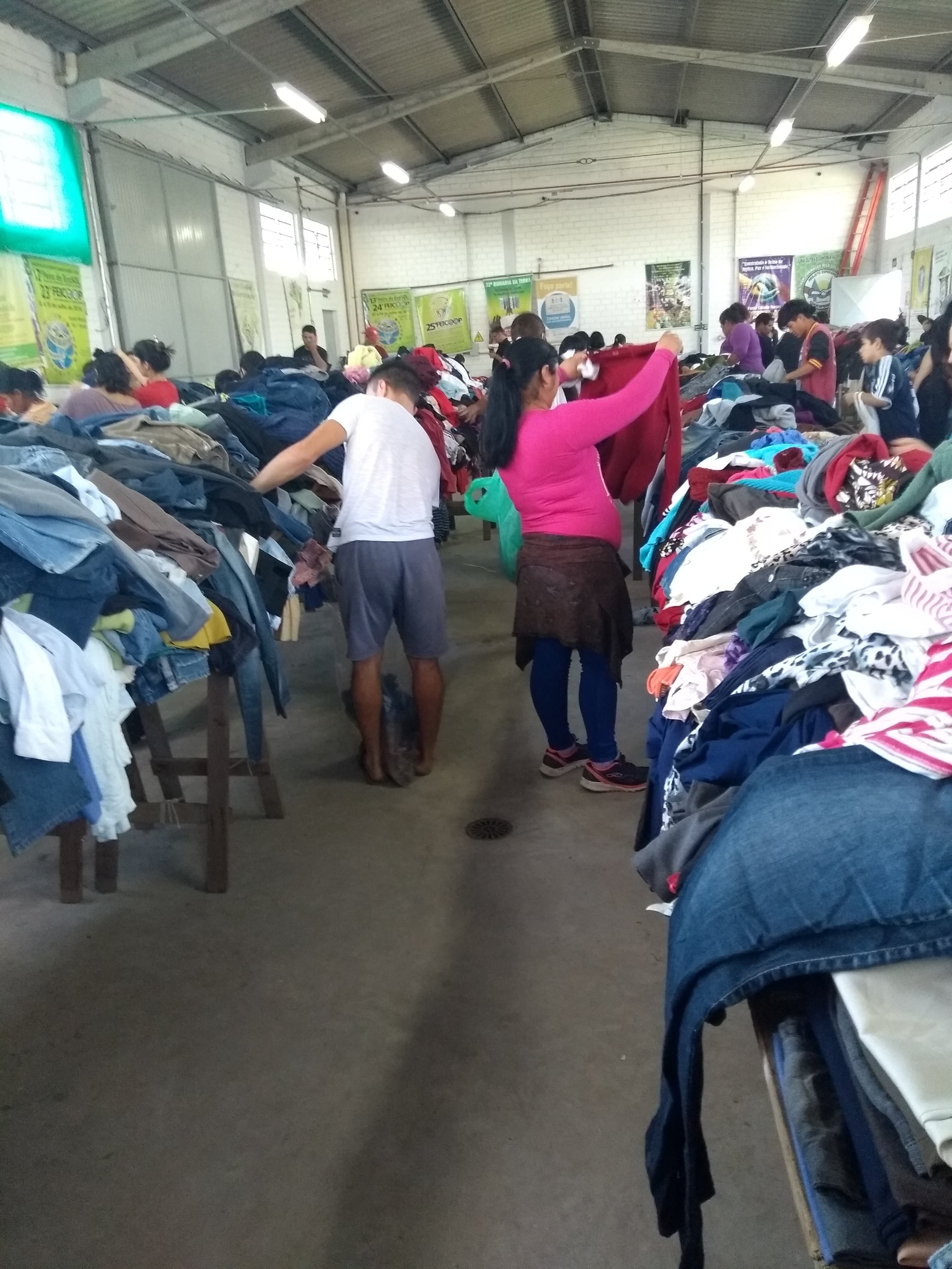 No dia, foram distribuídas senhas por ordem de chegada na frente dos pavilhões para facilitar a organização. Cada grupo de pessoas teve um tempo determinado para escolher os itens de que necessitavam. A atividade é promovida pela equipe de voluntários do Projeto Esperança/Cooesperança e do Banco da Esperança da Arquidiocese de Santa Maria.
